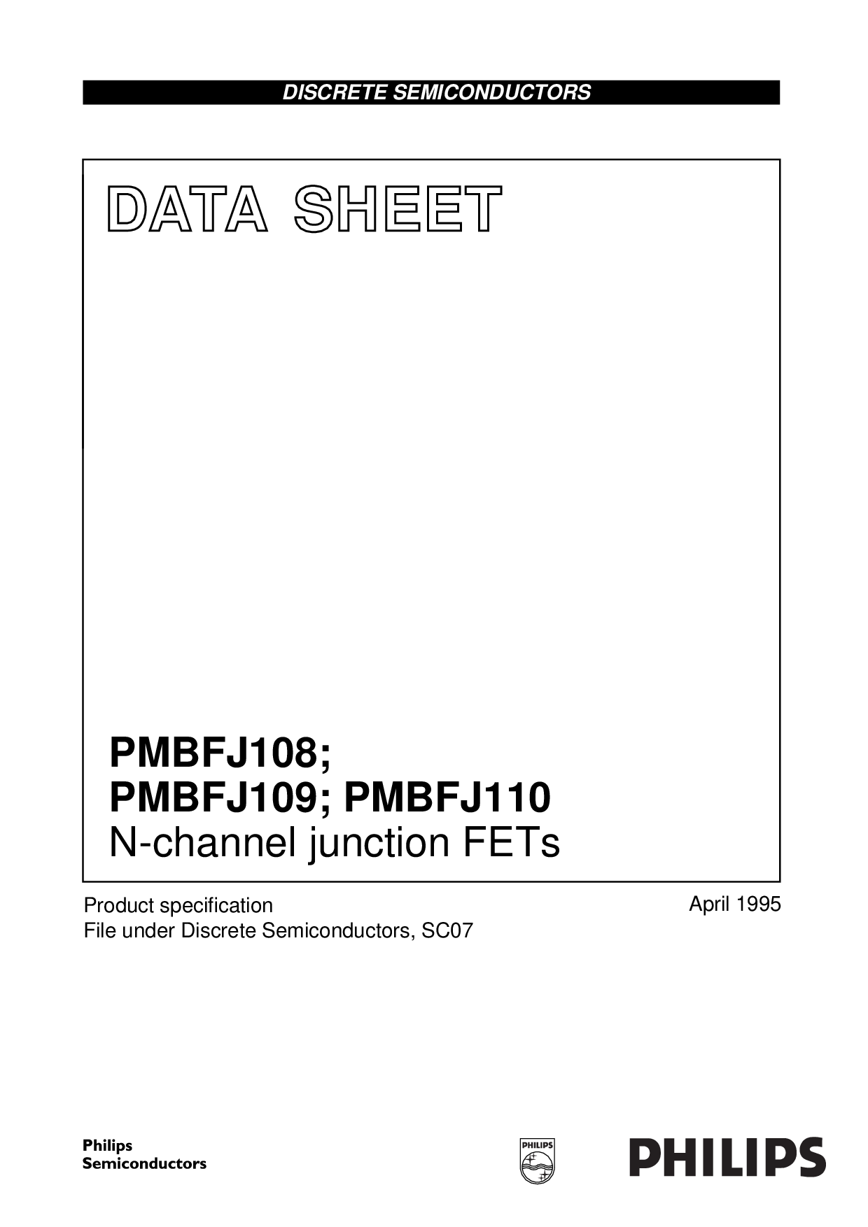 dat一个shEET 产品 Speci 文件 下 离散 半导体, sc07 april 1995 离散 半导体 pmbfj108; pmbfj109; pmbfj110 n通道 接合点 fets | |
