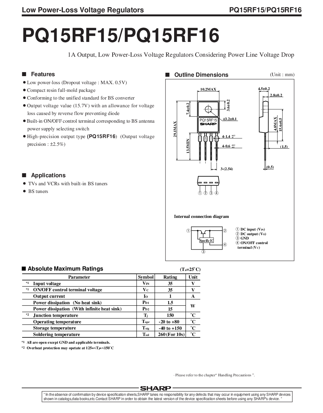 低 电源-损失 电压 调节器 pq15rf15/pq15rf16