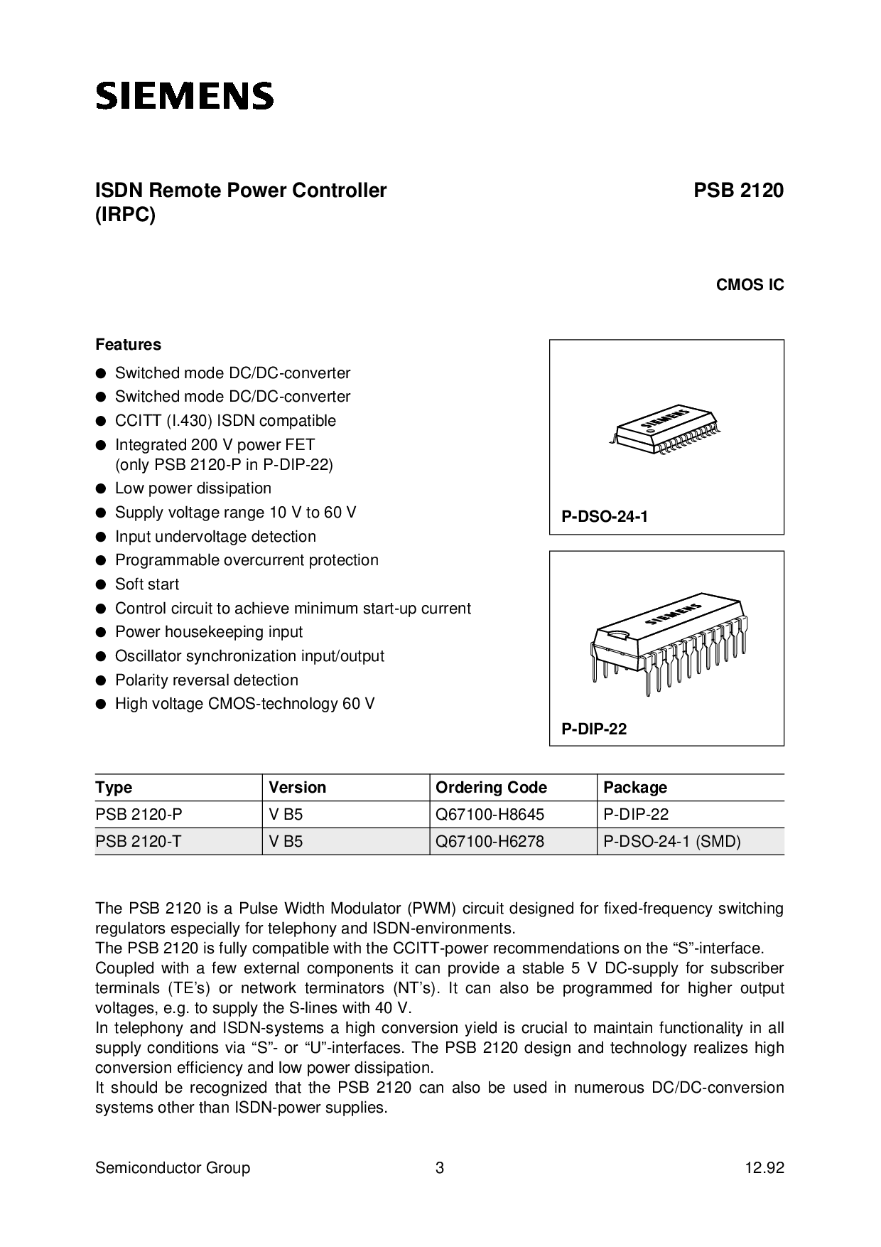供应 条件 通过 “s”- 或 “u”-接口. 这 psb 2120 设计 和 技术 实现 高