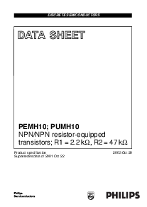 dat一个shEET 产品 Speci 取代 数据 的 2001 oct 22 2003 Oct 20 离散 半导体 pemh10; pumh10 npn/npn 电阻-配备 晶体管; R1 = 2.2 k Ω ,r2=47k Ω | |