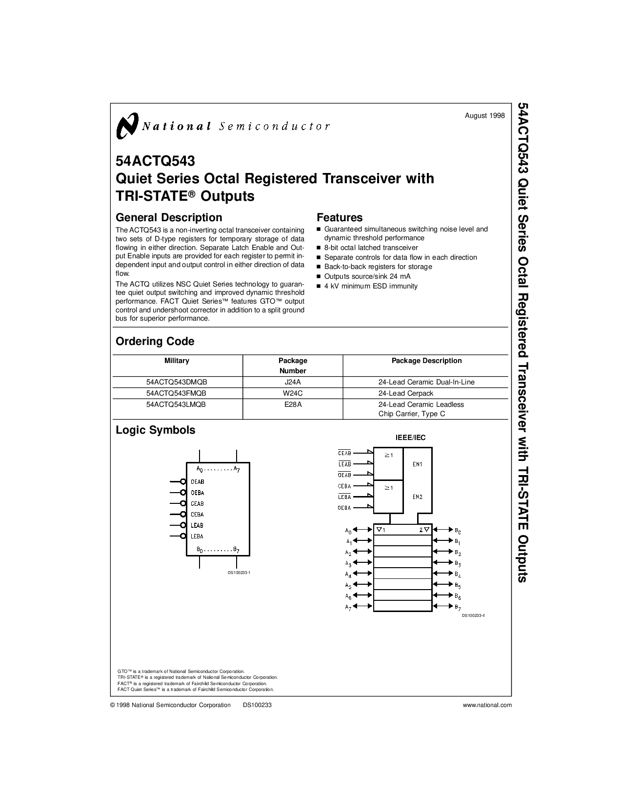 © 1998 国家 半导体 公司 DS100233 www.国家.com