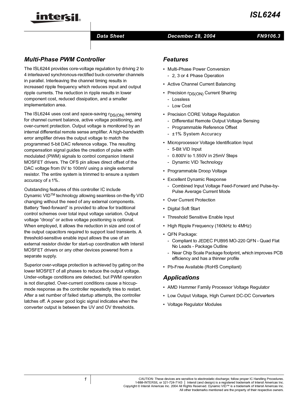 版权 © intersil 美洲 公司 2004 全部 权利 保留. 动态 vid™ 是 一个 商标 的 intersil 美洲 公司