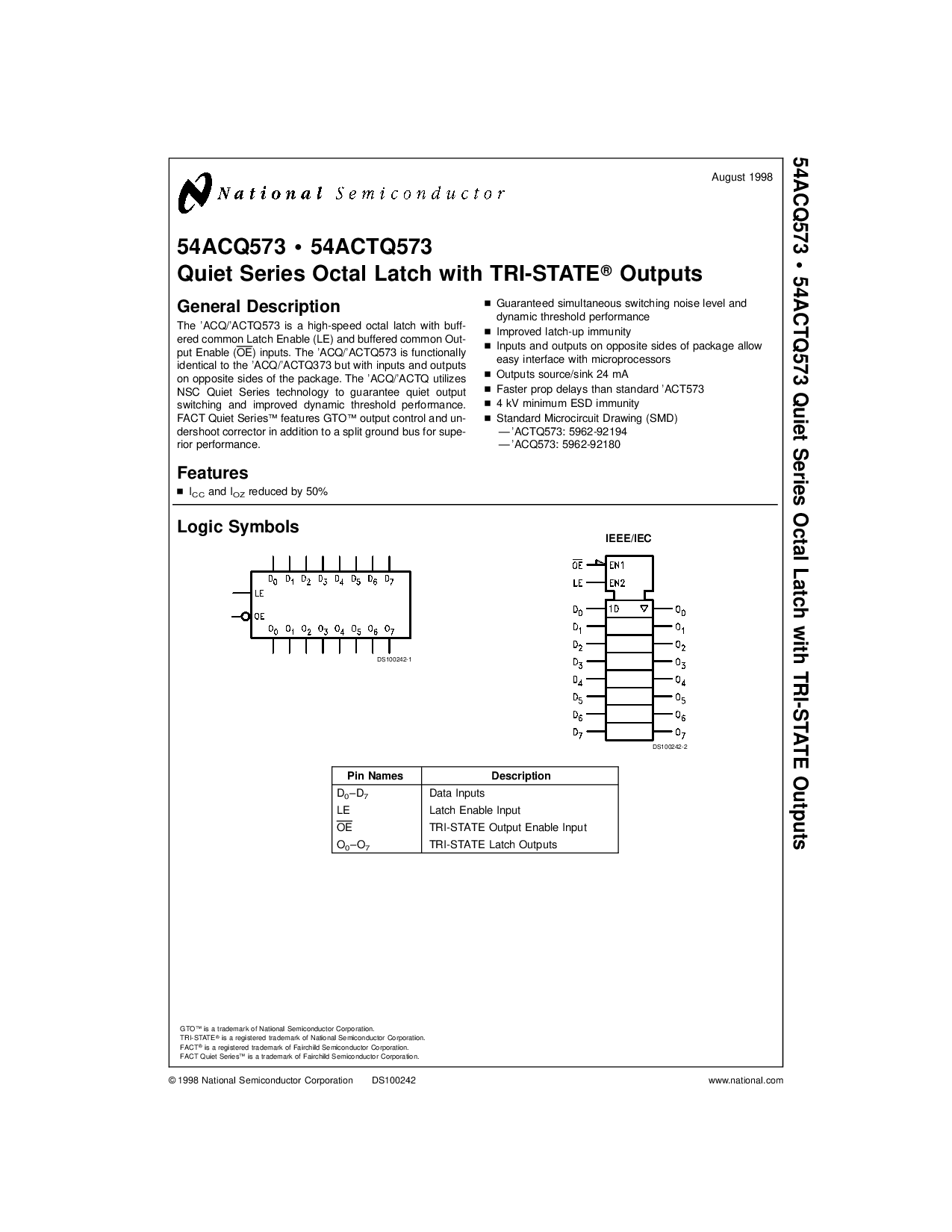 54ACTQ573 安静 系列 八进制 门闩 与 三态 产出