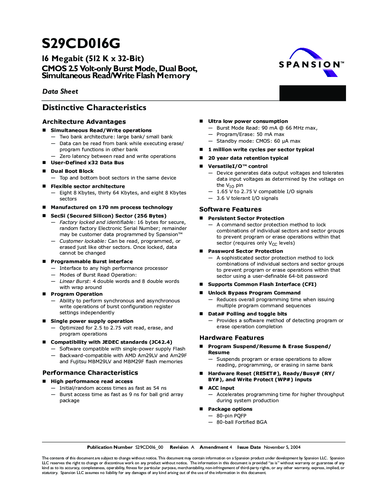 16 Megabit (512 K x 32-Bit) CMOS 2.5 Volt-only Burst Mode, Dual Boot, Simultaneous Read/Write Flash Memory