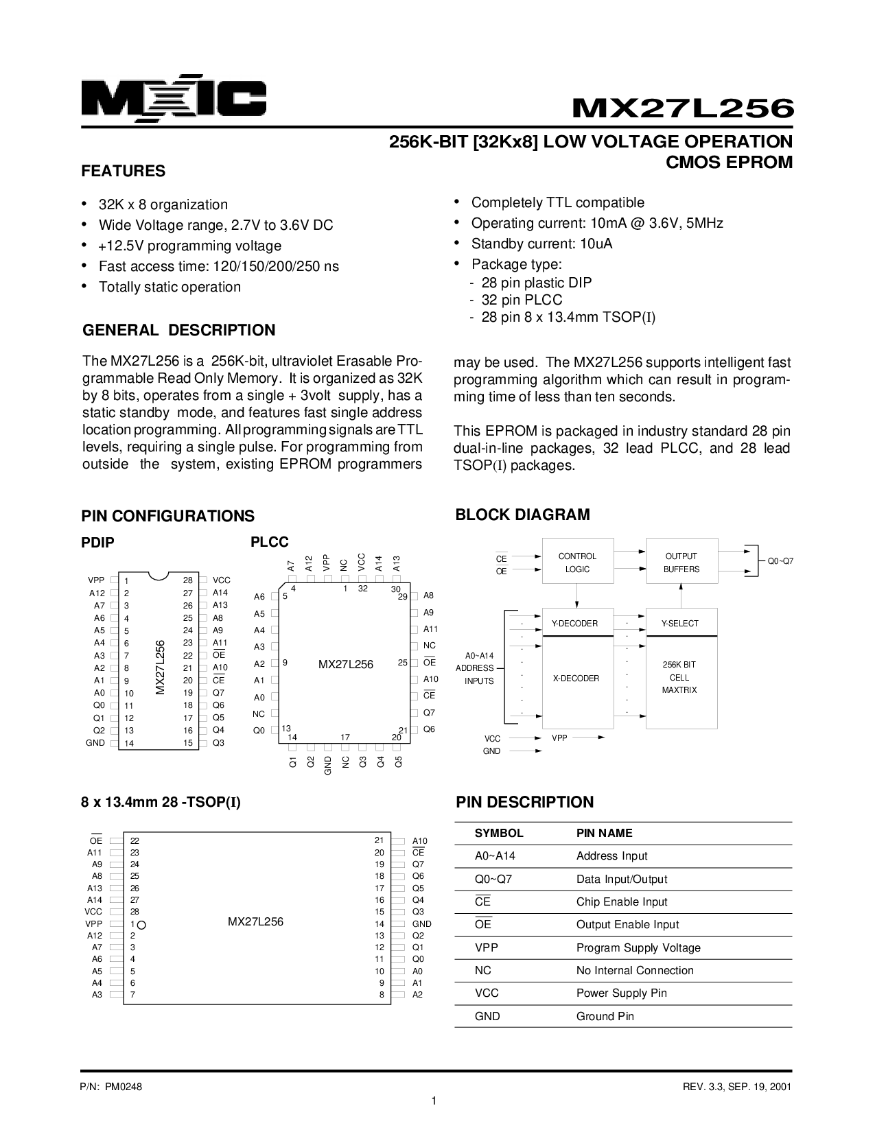 这 mx27l256 是 一个 256k-有点, 紫外线 可擦除 专业版-
