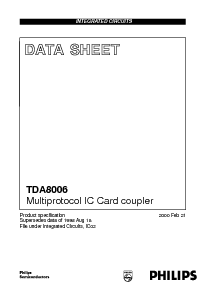dat一个shEET 产品 Speci 取代 数据 的 1998 8月 18 文件 下 综合 电路, ic02 2000 二月 21 综合 电路 TDA8006 多协议 集成电路 卡片 耦合器 | |