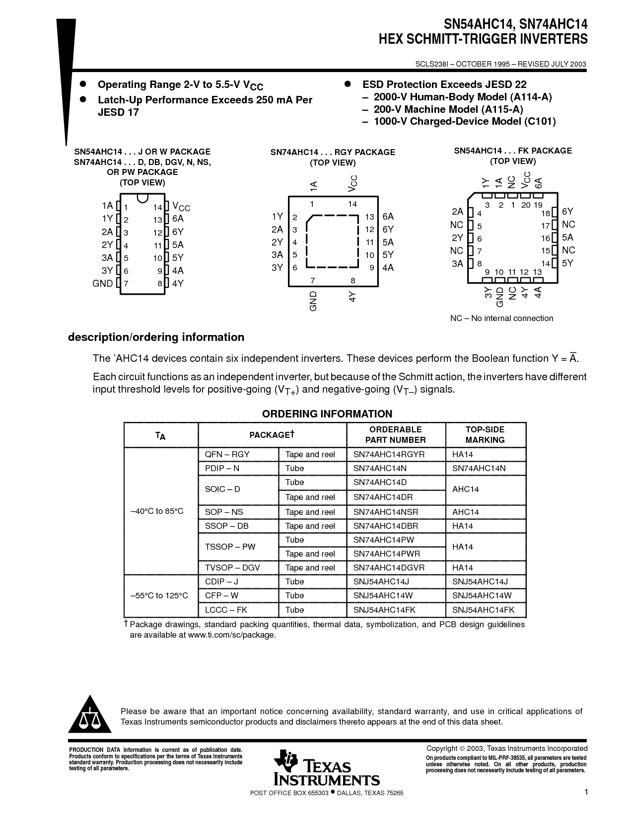 SN74AHC14 . . . d, db, dgv, n, ns,