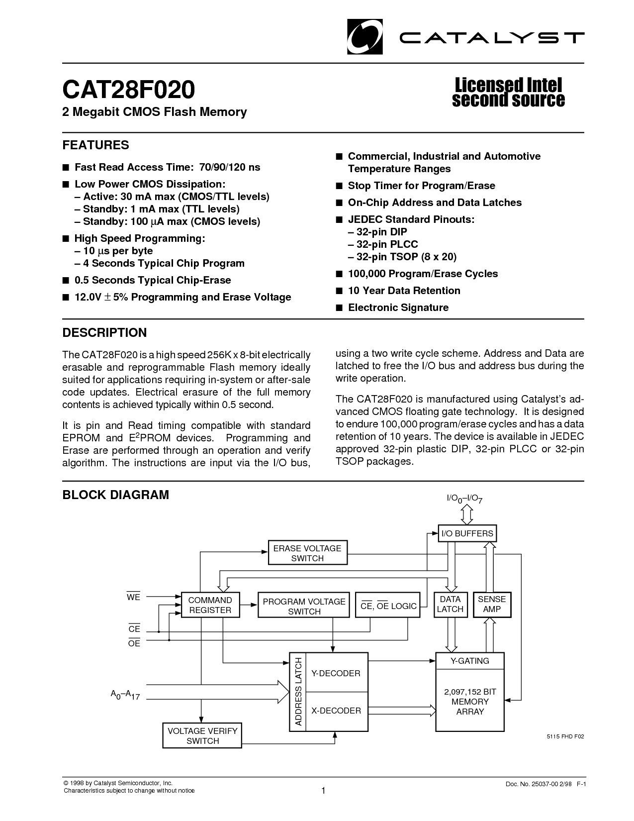 这 cat28f020 是 已制造 使用 catalyst’s 广告-