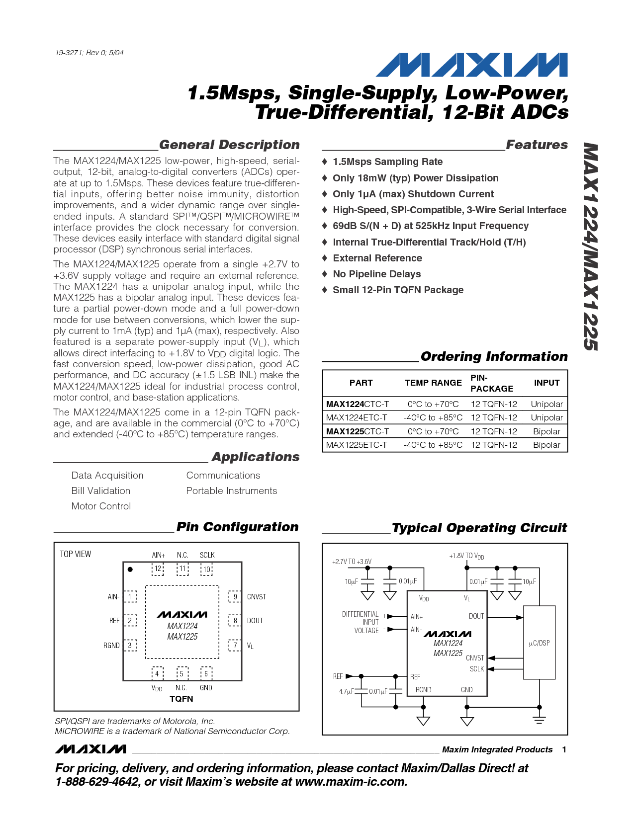 这 max1224/max1225 低-电源, 高-速度, 串行-