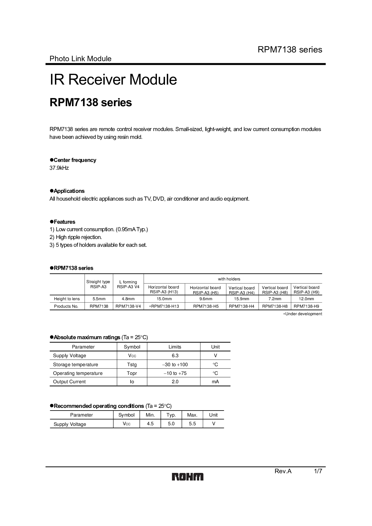 rpm7138 系列 是 远程 控制 接收器 模块. 小-尺寸, 灯光-重量, 和 低 电流 消费 模块