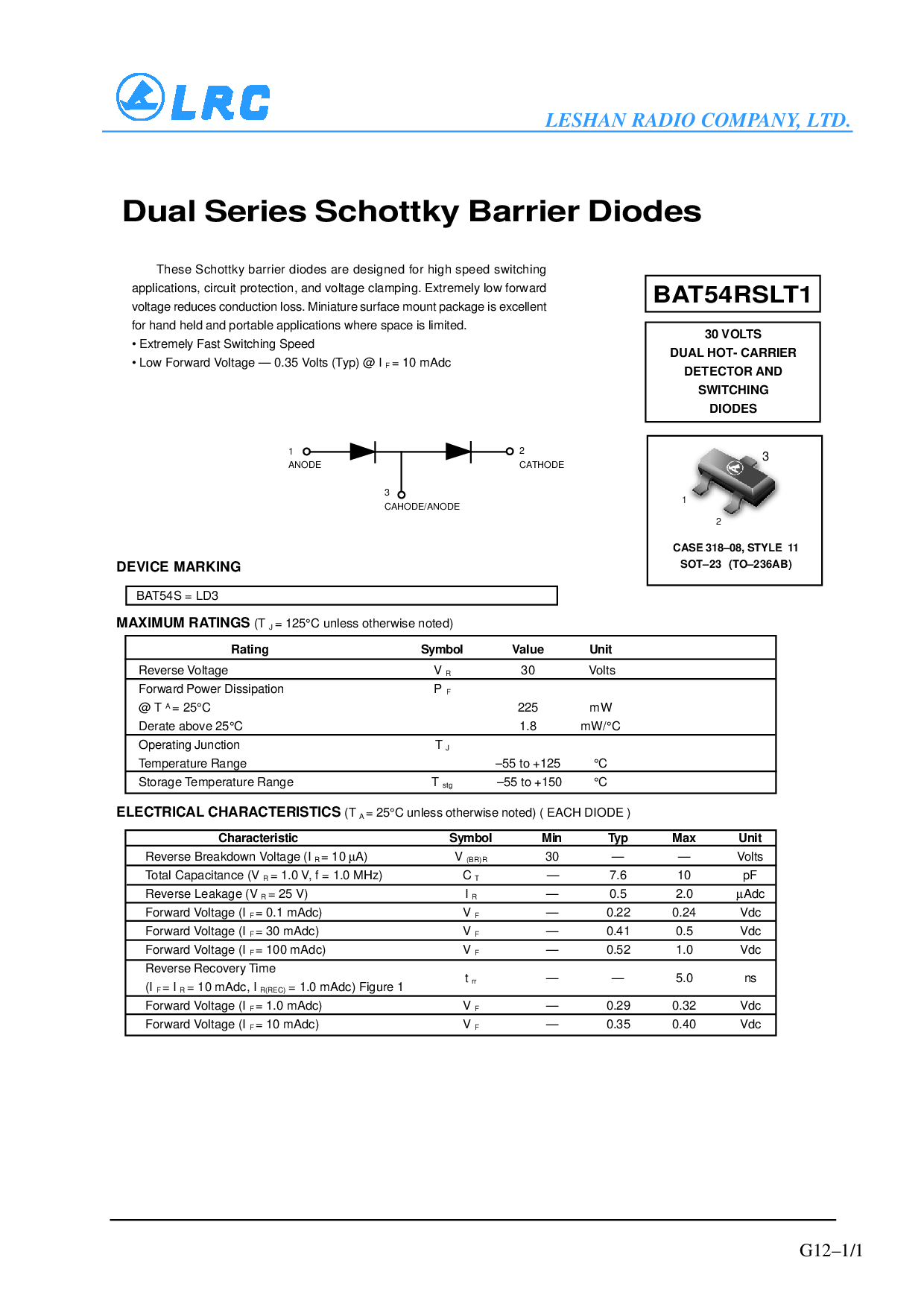 • 低 前进 电压 — 0.35 伏特 (典型值) @ 我
