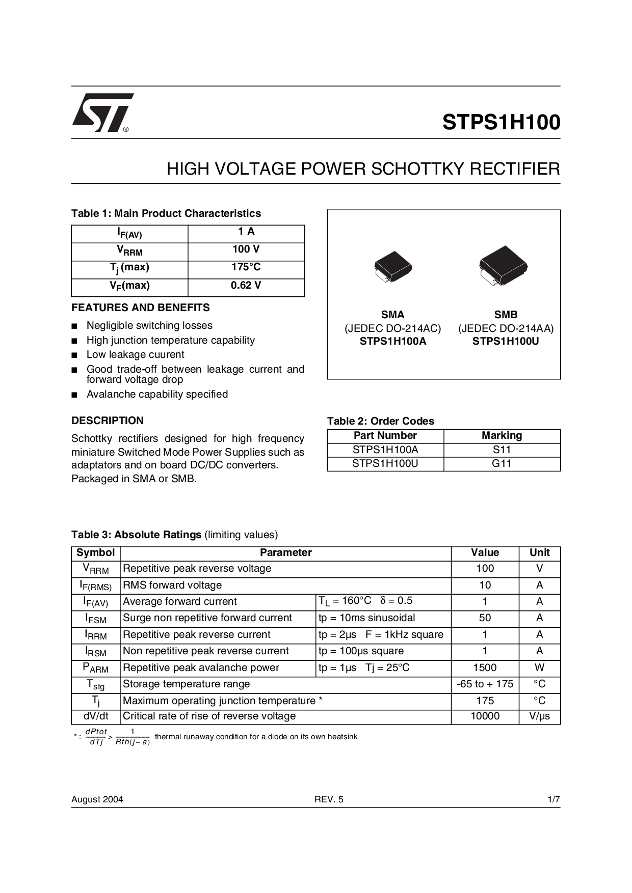 重复性 峰值 雪崩 电源 tp = 1µs tj = 25°c 1500 w