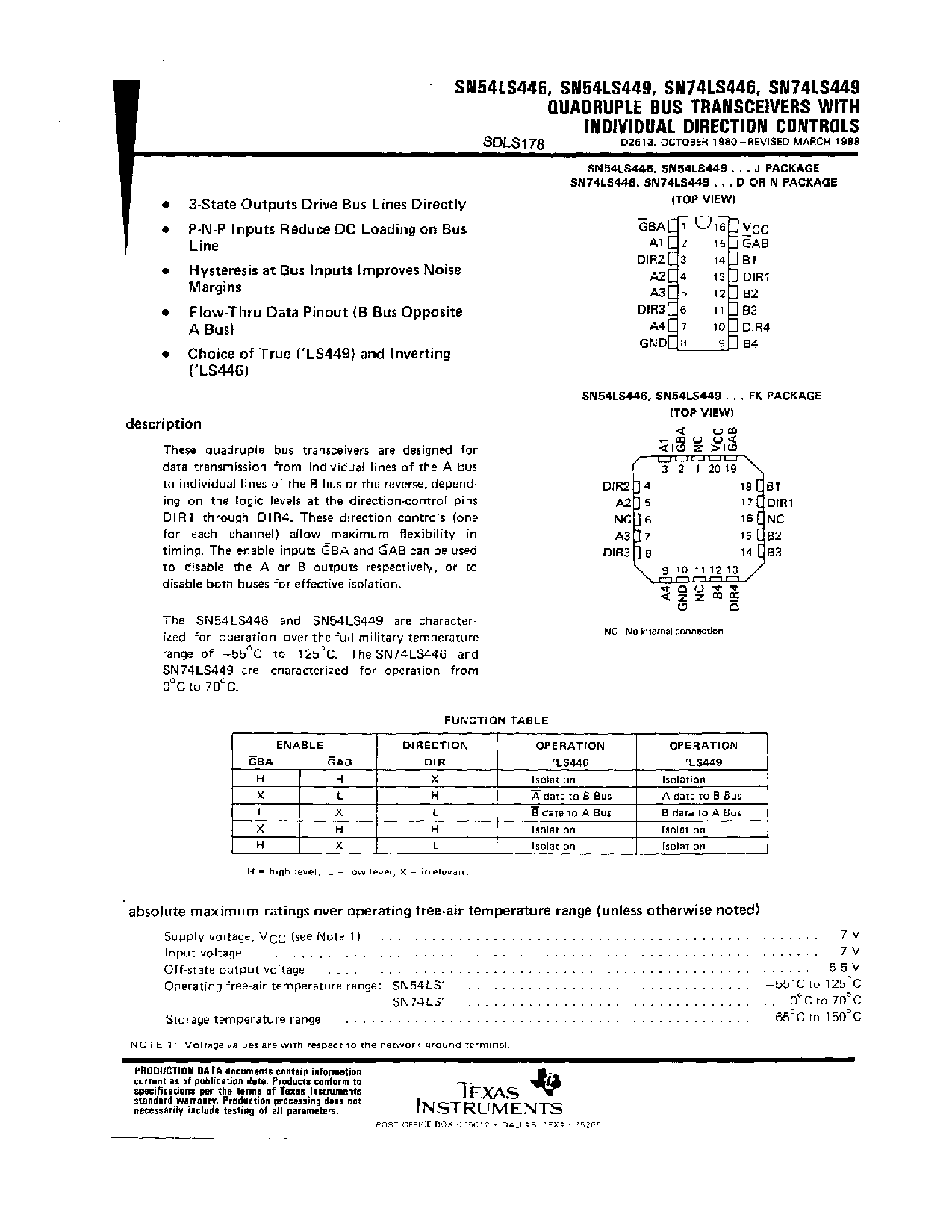 QUADRUPLE BUS TRANSCEIVERS WITH INDIVIDUAL DIRECTION CONTROLS