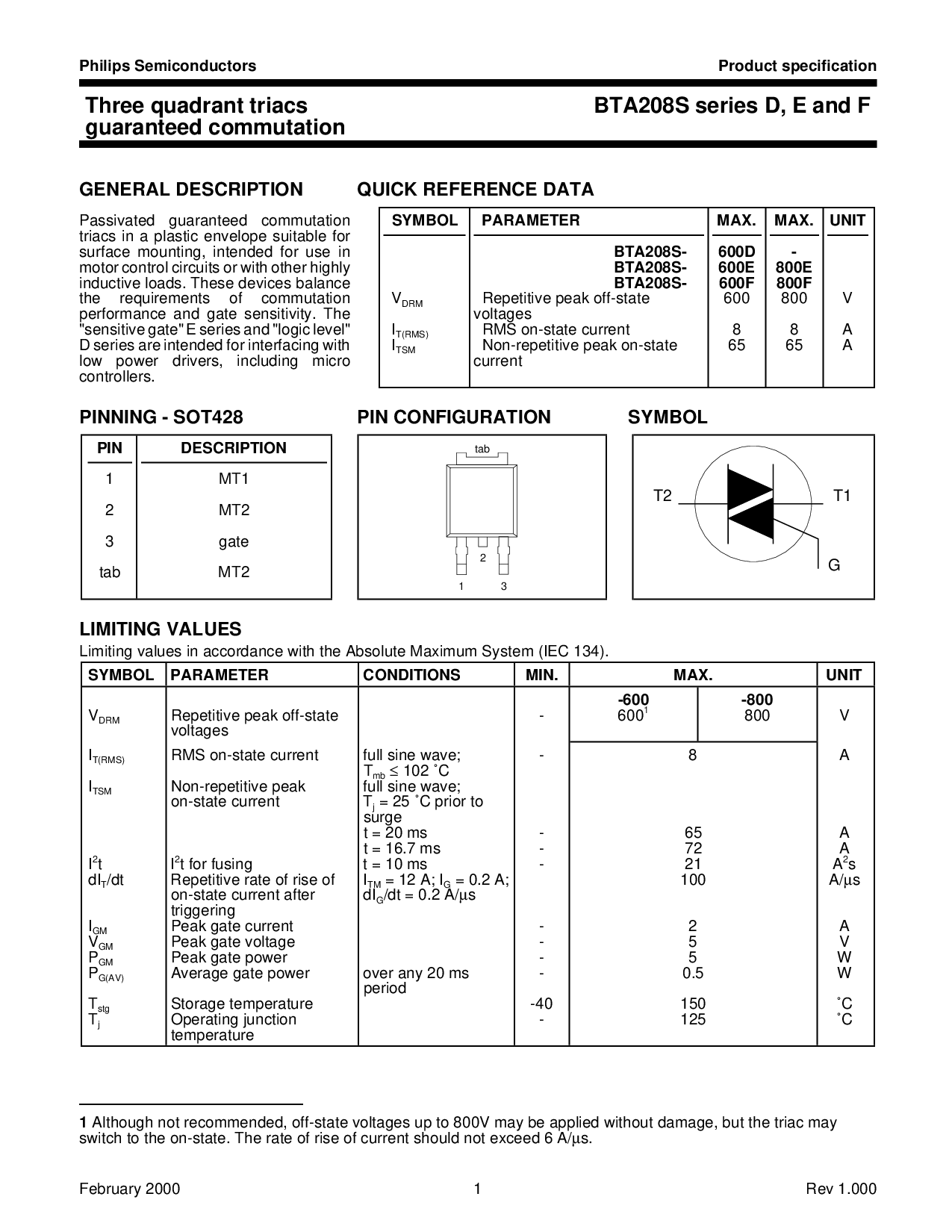 三个 象限 triacs bta208s 系列 d, e? 和 f