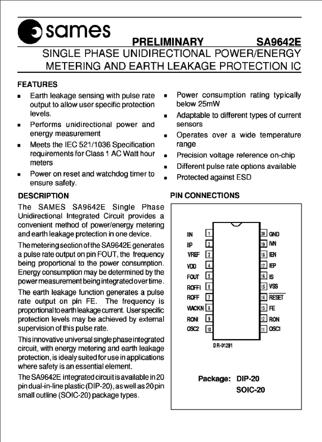 SINGLE PHASE UNIDIRECTIONAL POWER/ENERGY METERING AND EARTH LEAKAGE PROTECTION IC
