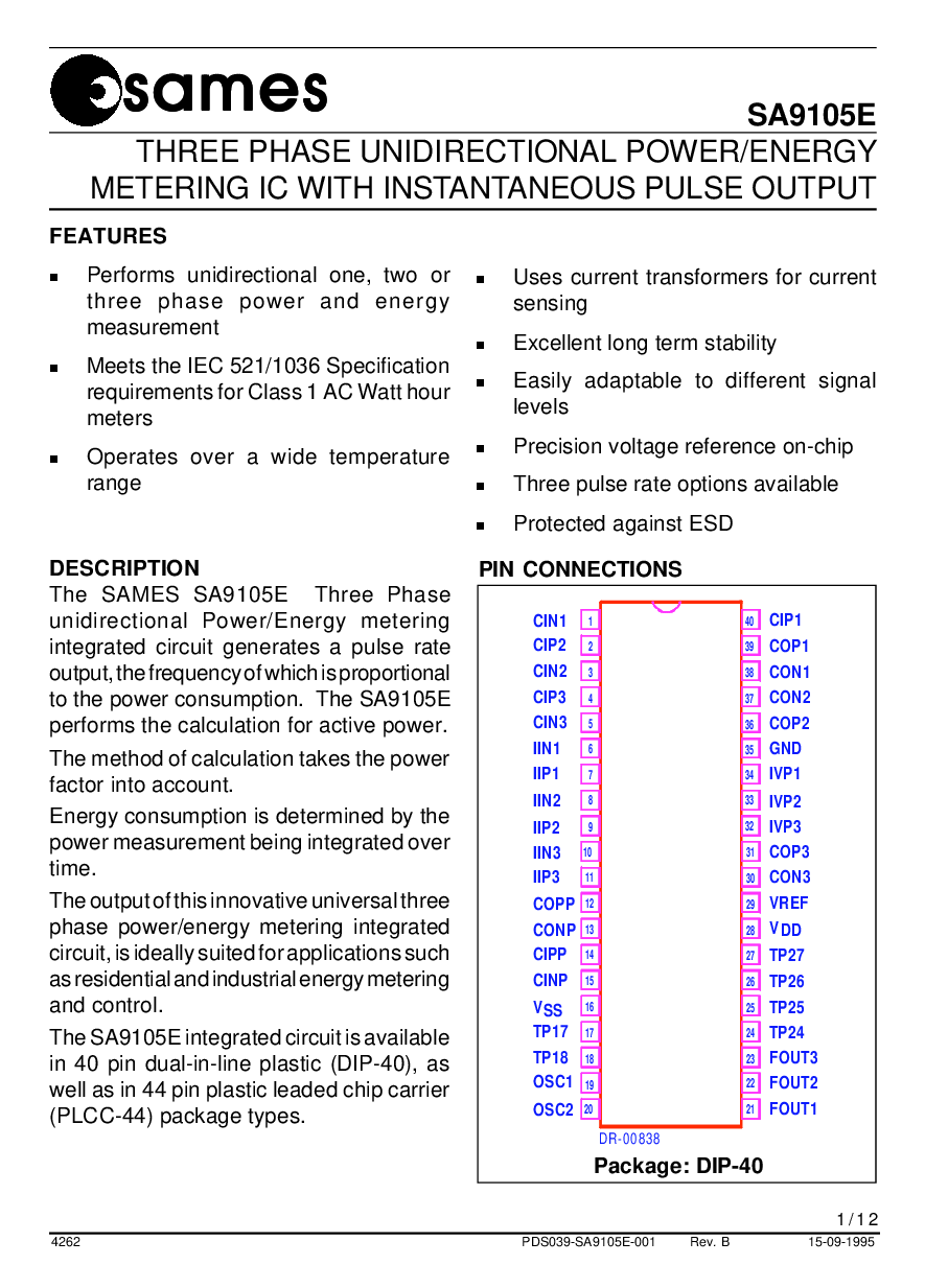 4262 pds039-sa9105e-001 rev. b 15-09-1995