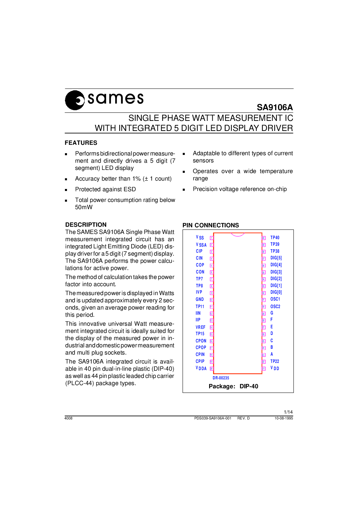4008 pds039-sa9106a-001 rev. d 10-08-1995