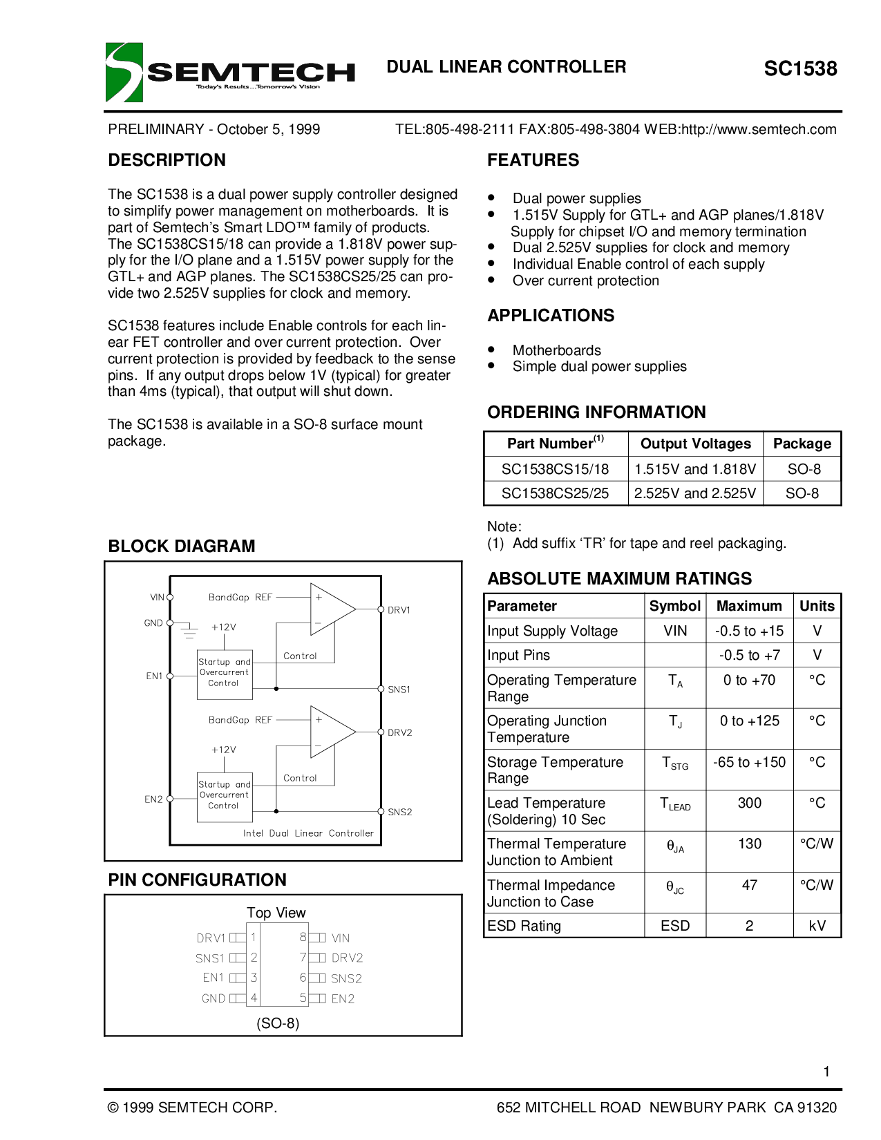 © 1999 semtech corp. 652 mitchell road 新建bury 园区 ca 91320