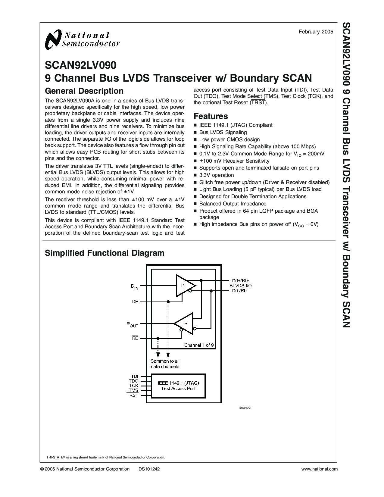 SCAN92LV090A 一个 入点 一个 系列 总线 LVDS trans-