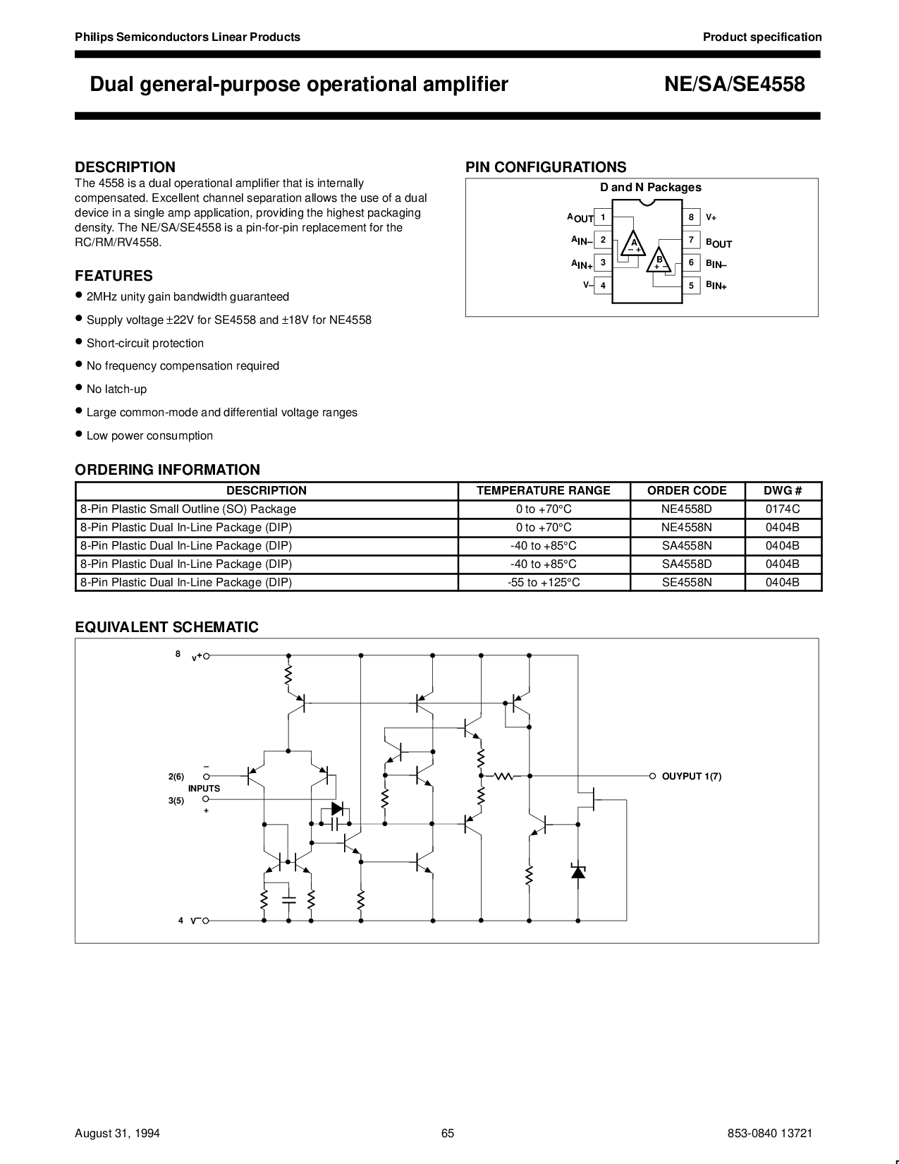 密度. 这 ne/sa/se4558 是 一个 pin-for-pin 更换 用于 这