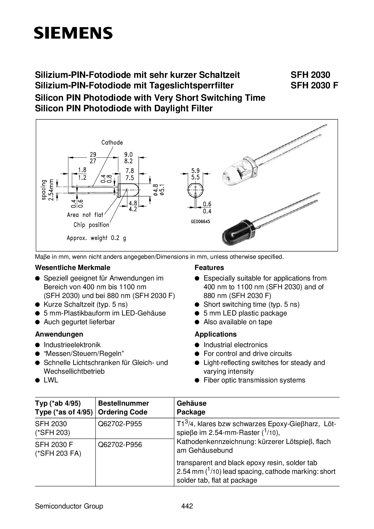(sfh 2030) und 北 880 nm (sfh 2030 f)