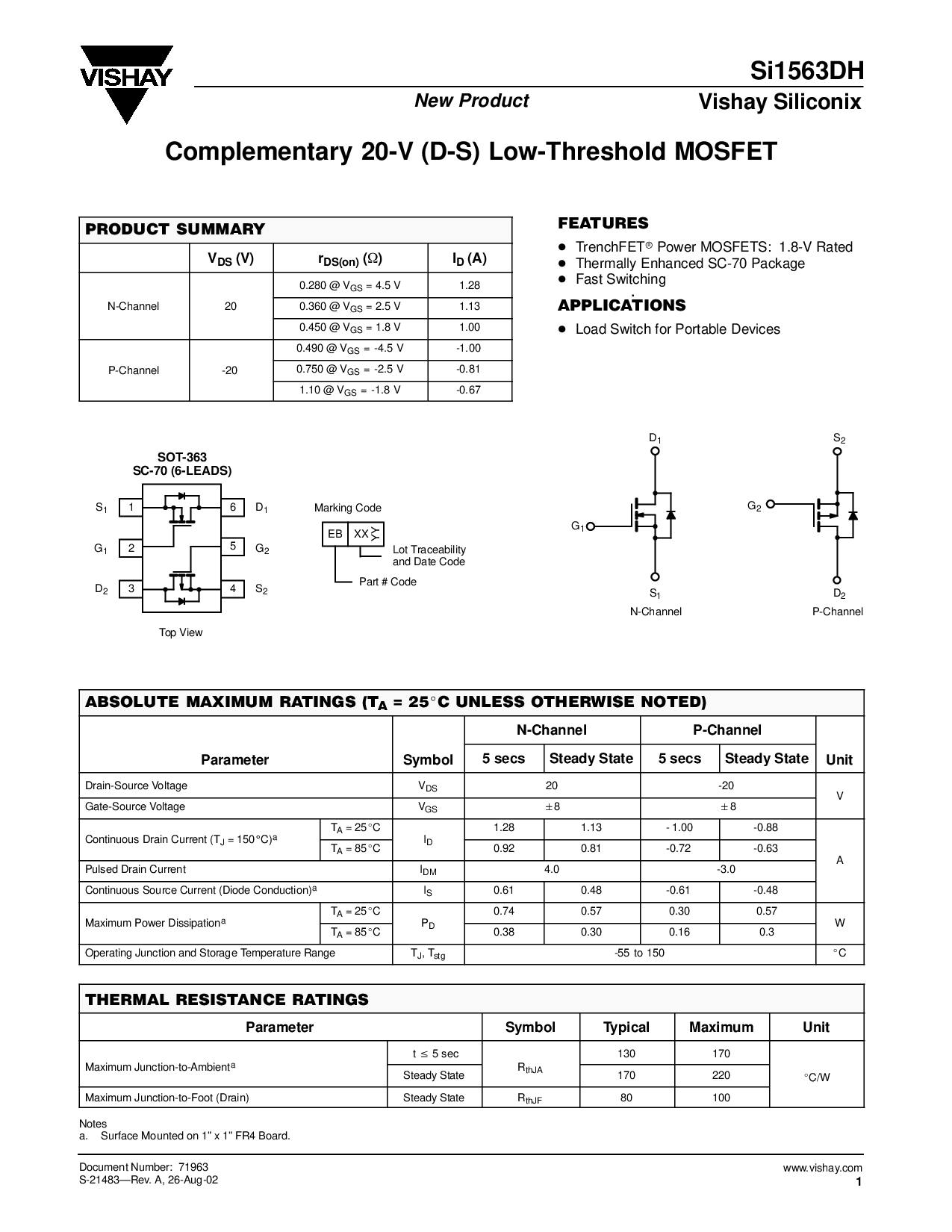 互补20-v (d-s) 低-阈值 场效应晶体管