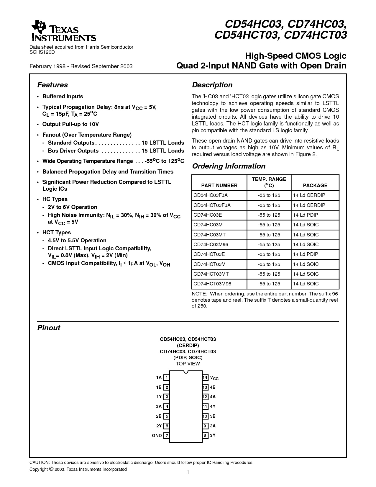 CD54HC03F3A -55 至 125 14 ld cerdip
