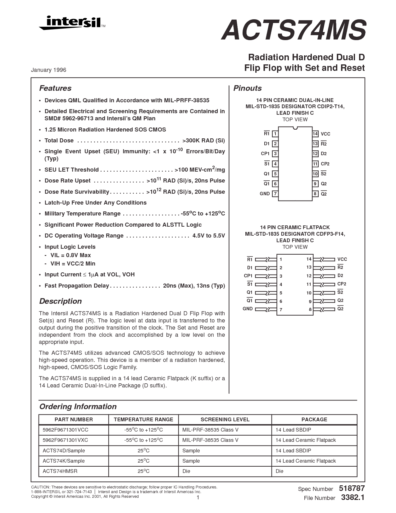 这 intersil acts74ms 是 一个 辐射 硬化 双 d 翻转 翻牌圈 与