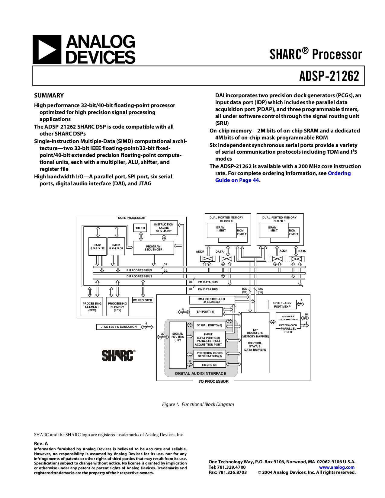 这 adsp-21262 是 可用 与 一个 200 mhz 核心 说明书