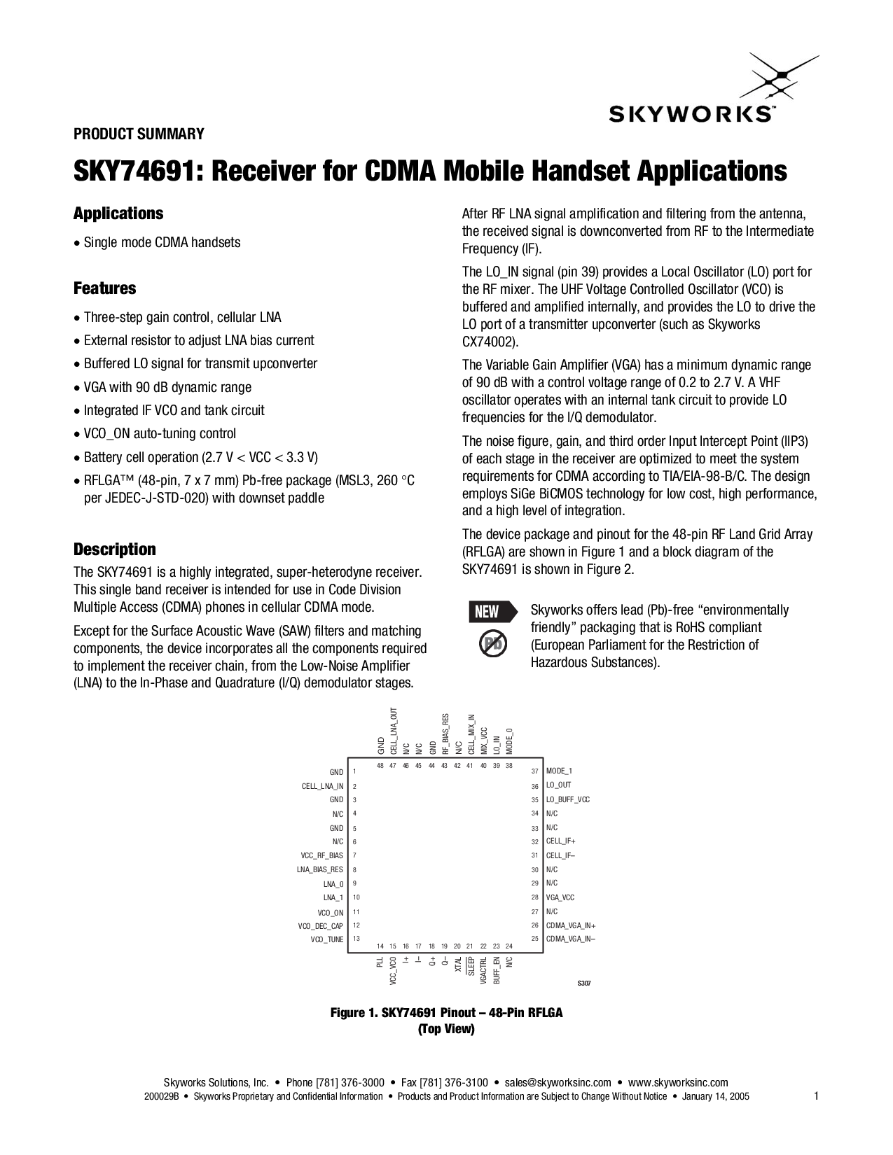 skyworks 优惠 铅 (铅)-免费 “environmentally