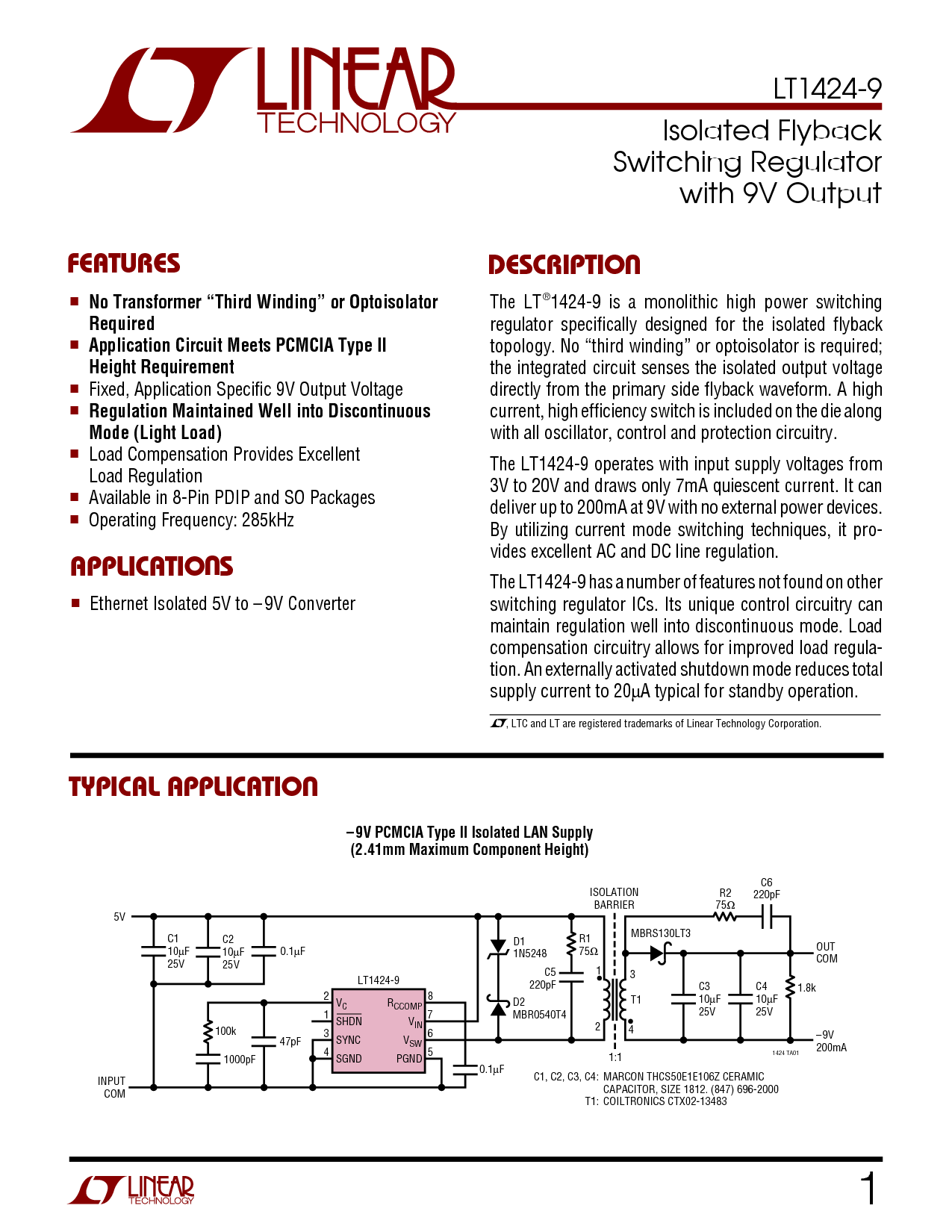 浏览型号LT1424IS8-9的Datasheet PDF文件第9页