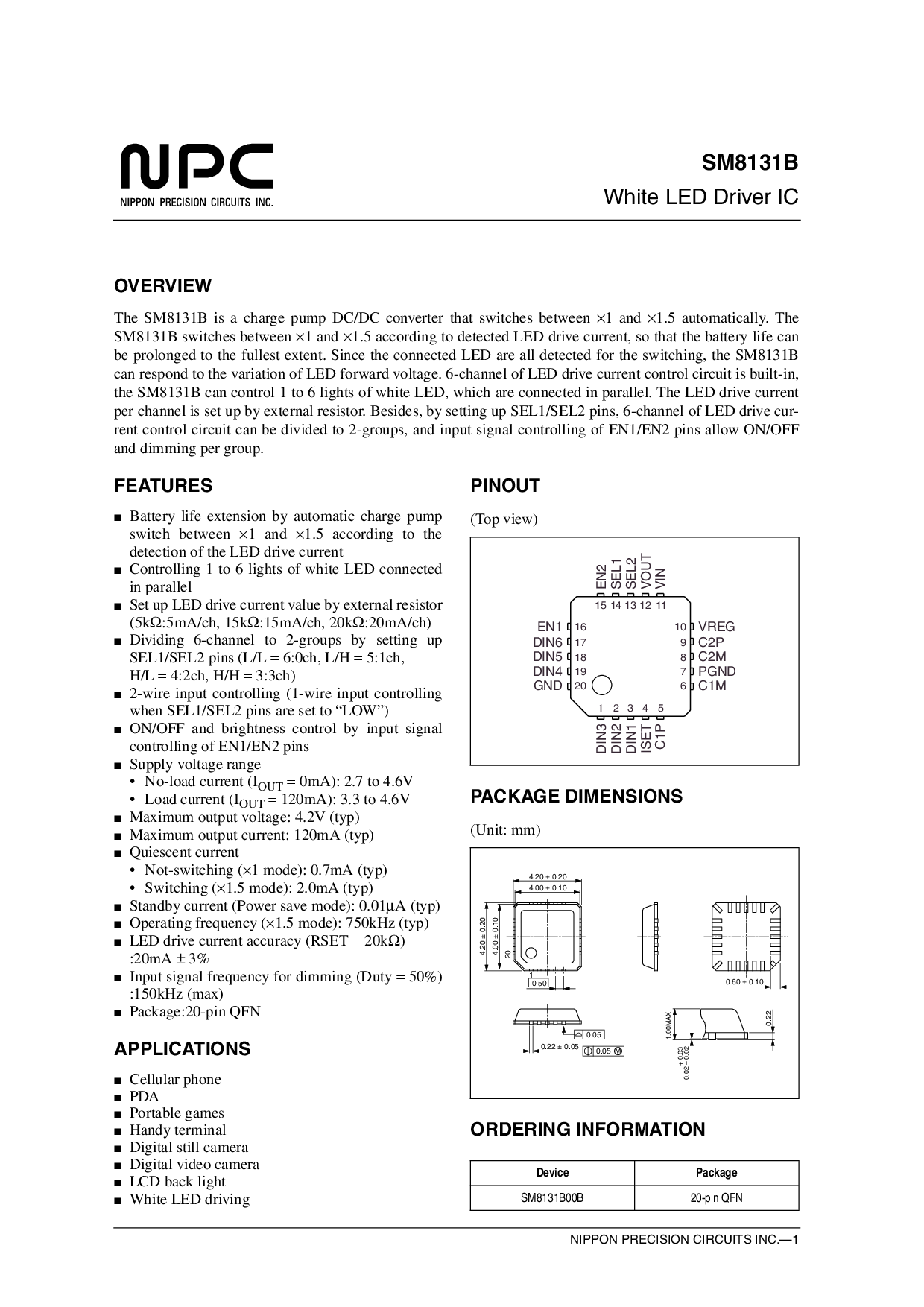 这 sm8131b 可以 控制 1 至 6 灯 的 白色 led指示灯, 哪个 是 已连接 入点 平行. 这 led指示灯 驱动器 电流