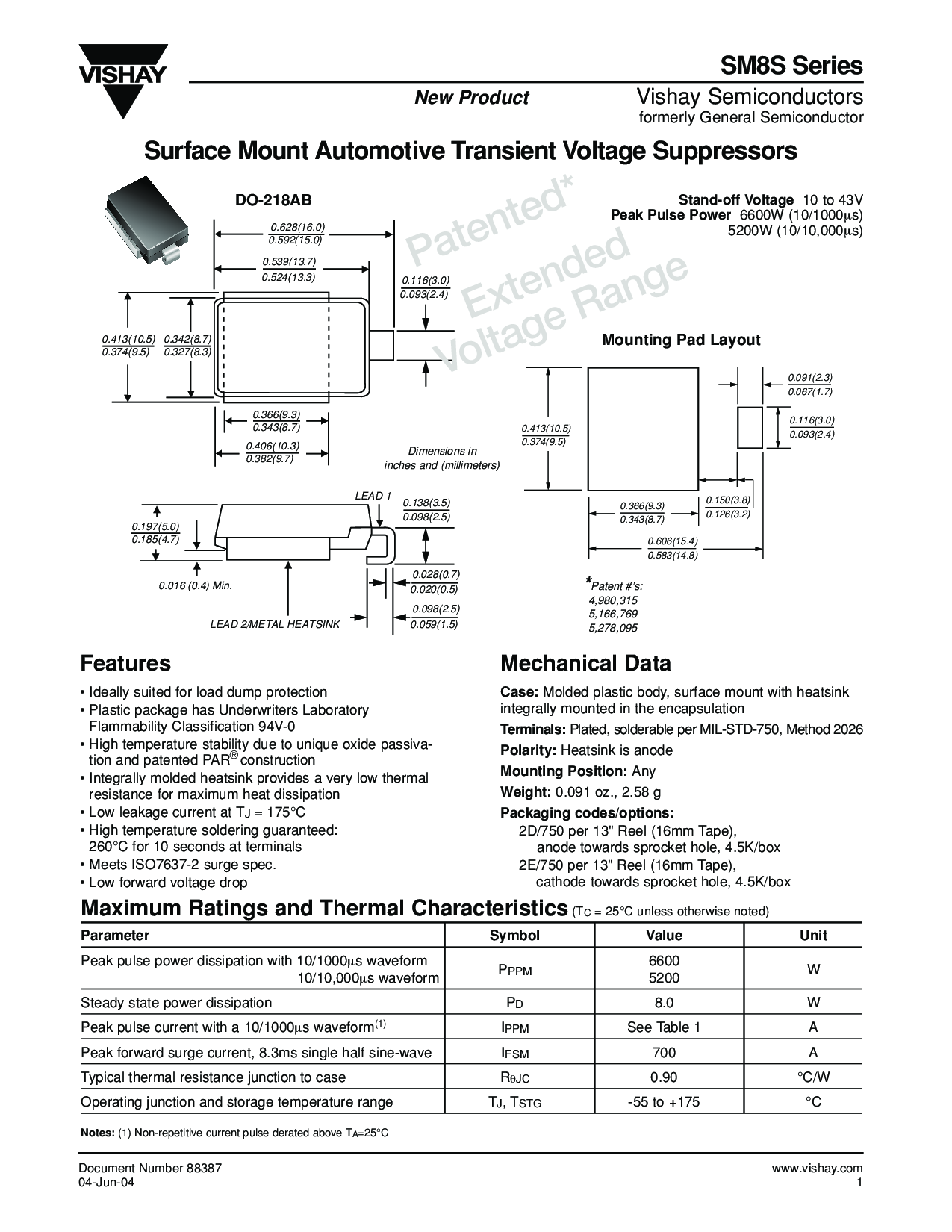 浏览型号SM8S17A的Datasheet PDF文件第2页