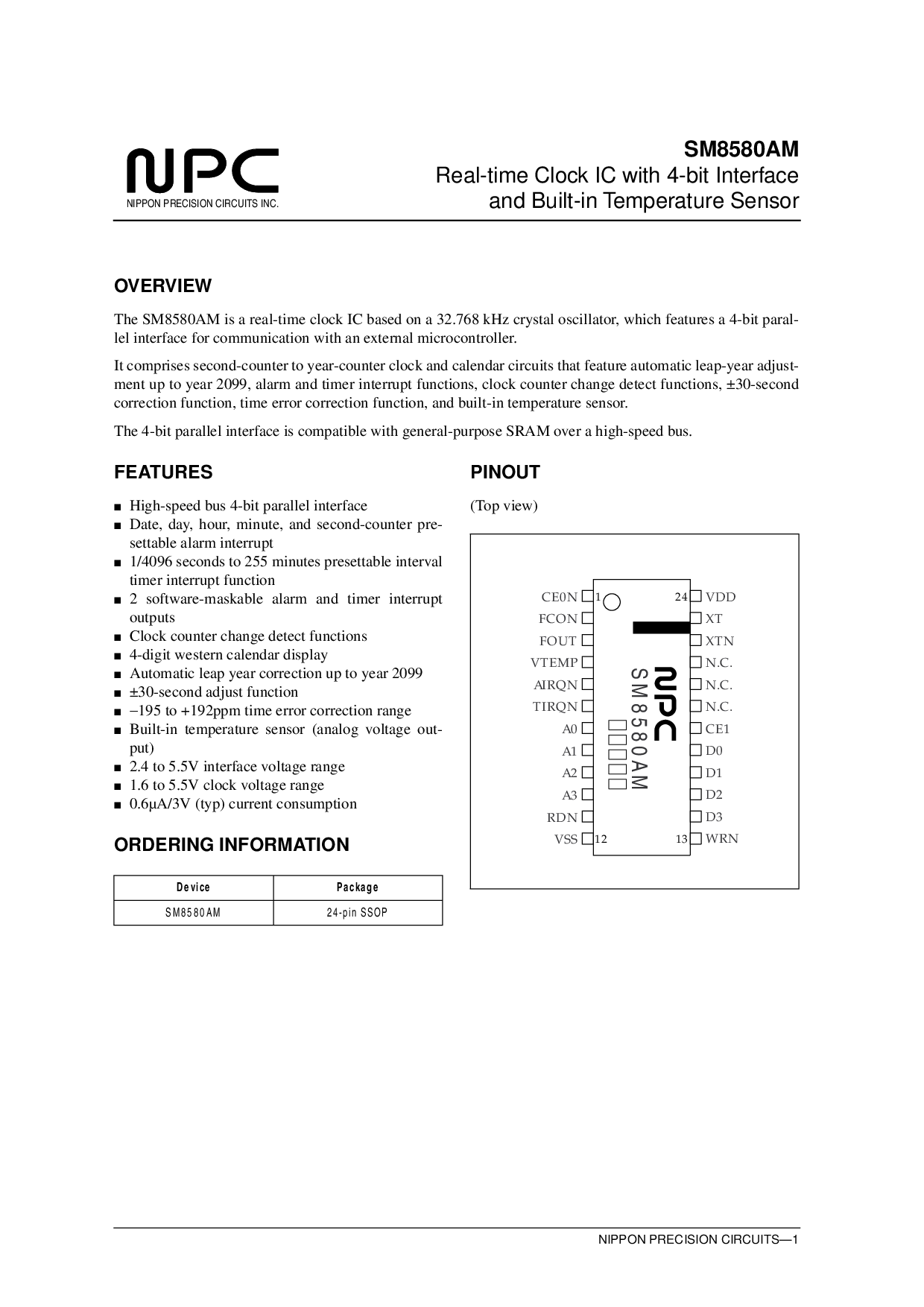 这 sm8580am 是 一个 实时 时钟 集成电路 基于 开启 一个 32.768 khz 水晶 振荡器, 哪个 特点 一个 4-有点 paral-