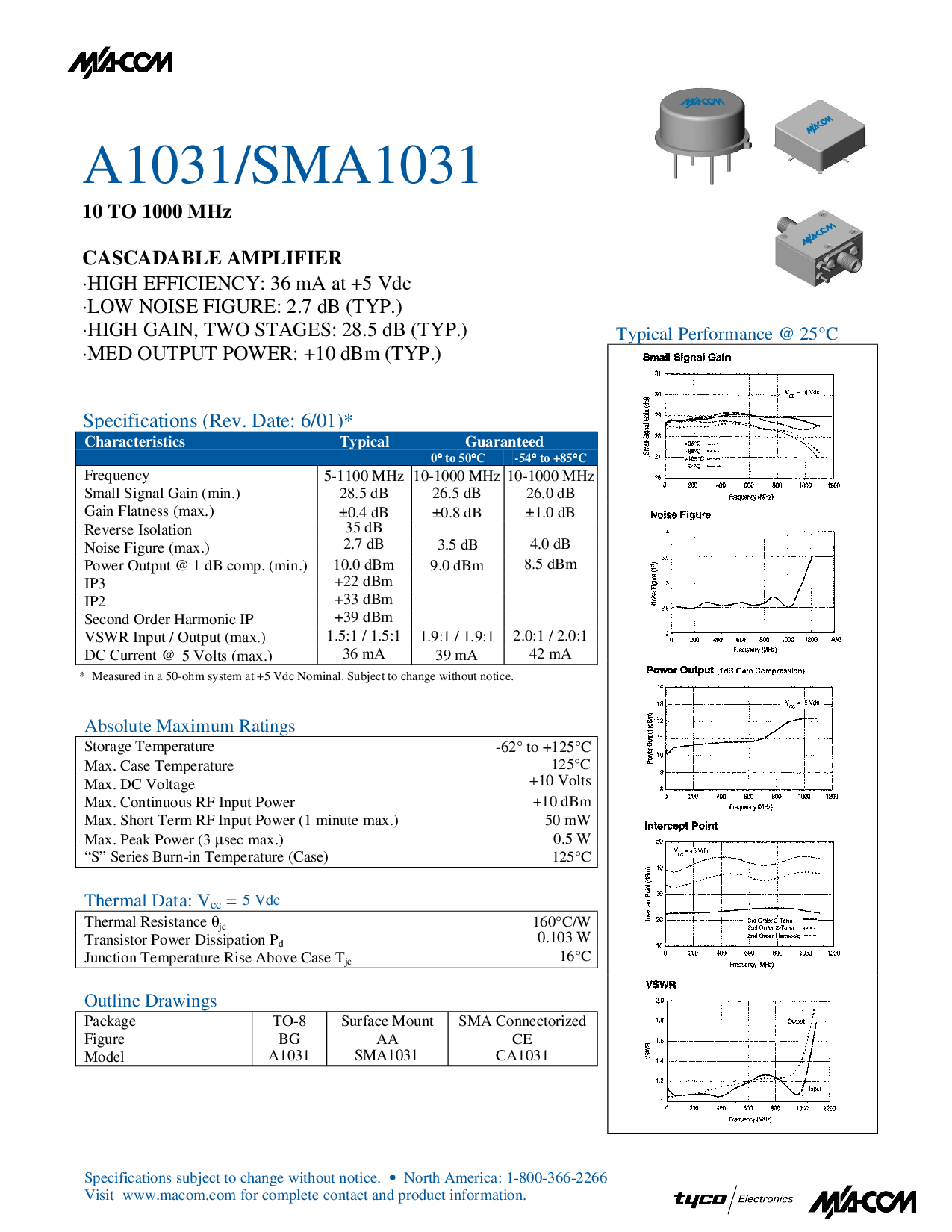 * 已测量 入点 一个 50-欧姆 系统 在 +5 vdc 标称值. 主题 至 变更 无 通知.