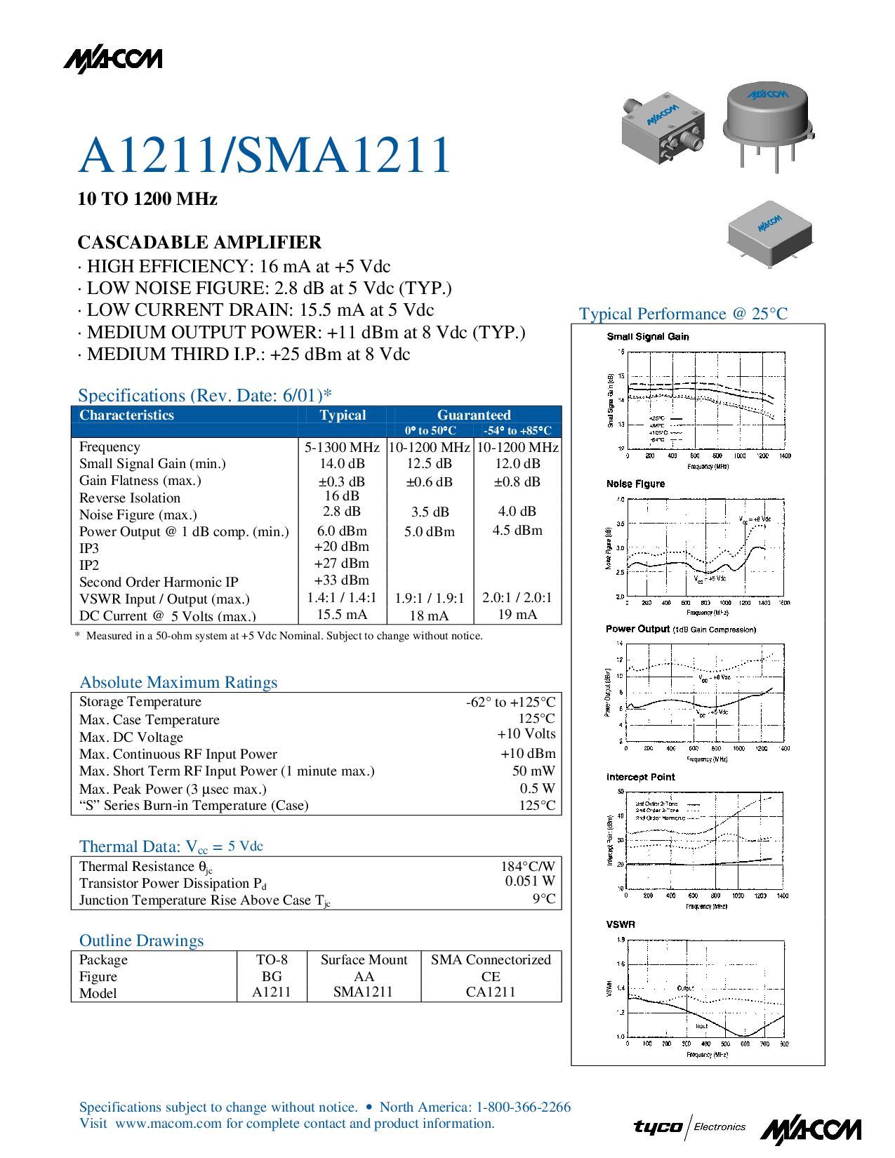 * 已测量 入点 一个 50-欧姆 系统 在 +5 vdc 标称值. 主题 至 变更 无 通知.