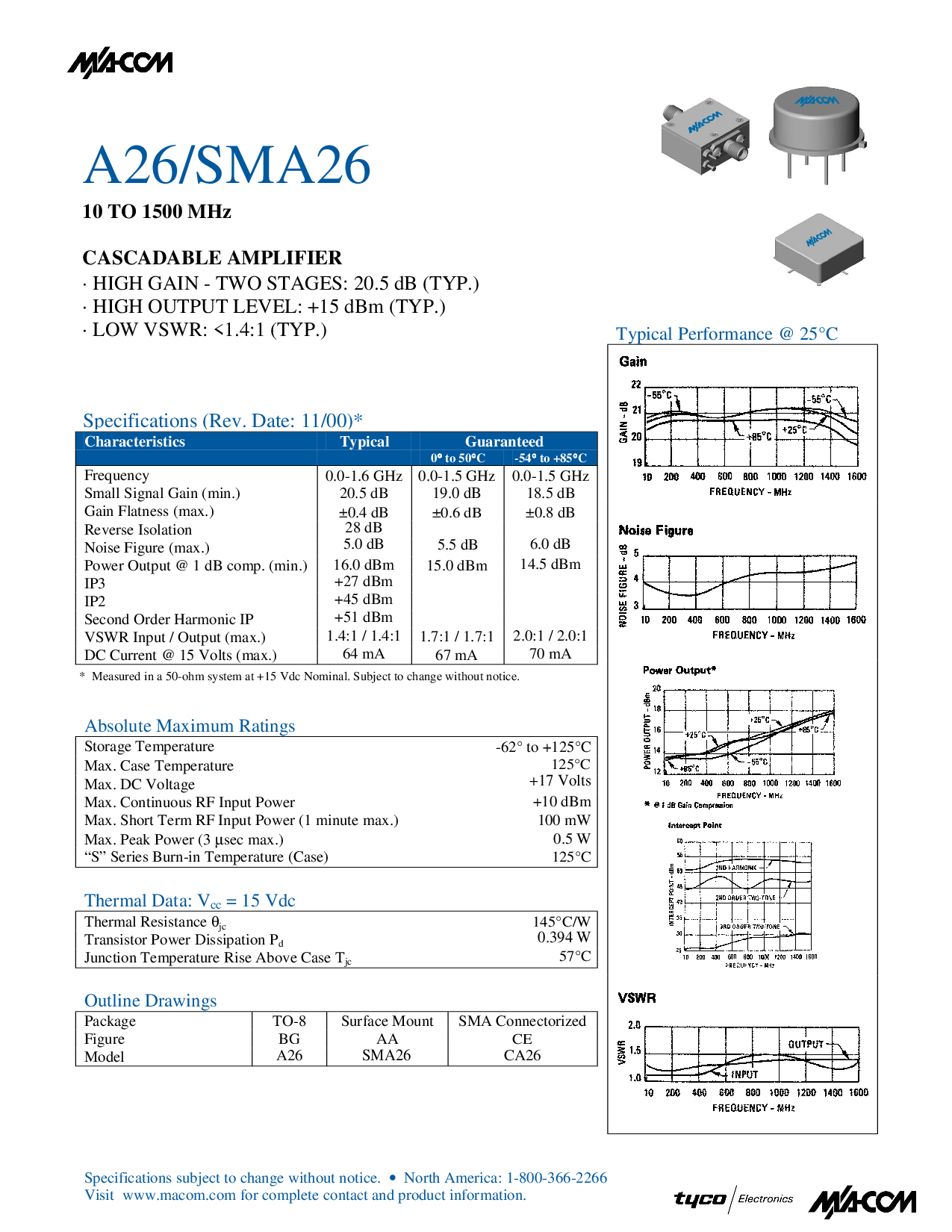 * 已测量 入点 一个 50-欧姆 系统 在 +15 vdc 标称值. 主题 至 变更 无 通知.