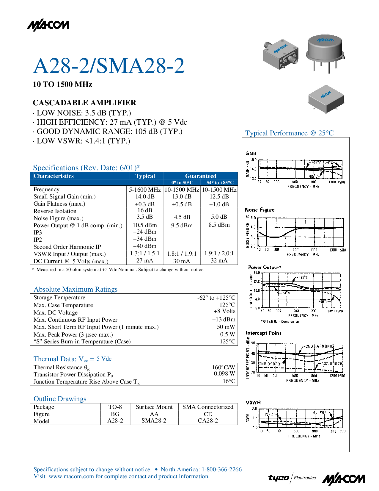 * 已测量 入点 一个 50-欧姆 系统 在 +5 vdc 标称值. 主题 至 变更 无 通知.