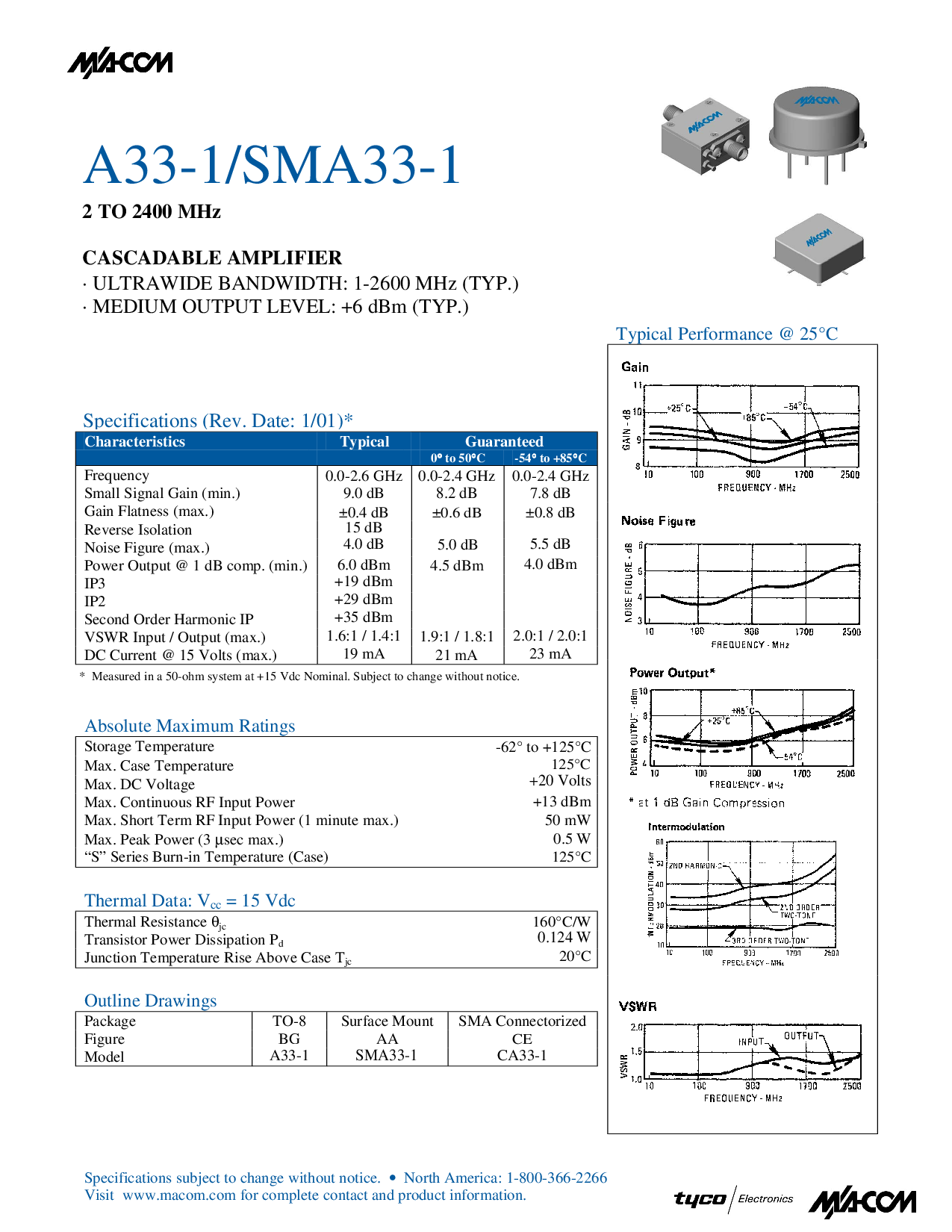 * 已测量 入点 一个 50-欧姆 系统 在 +15 vdc 标称值. 主题 至 变更 无 通知.