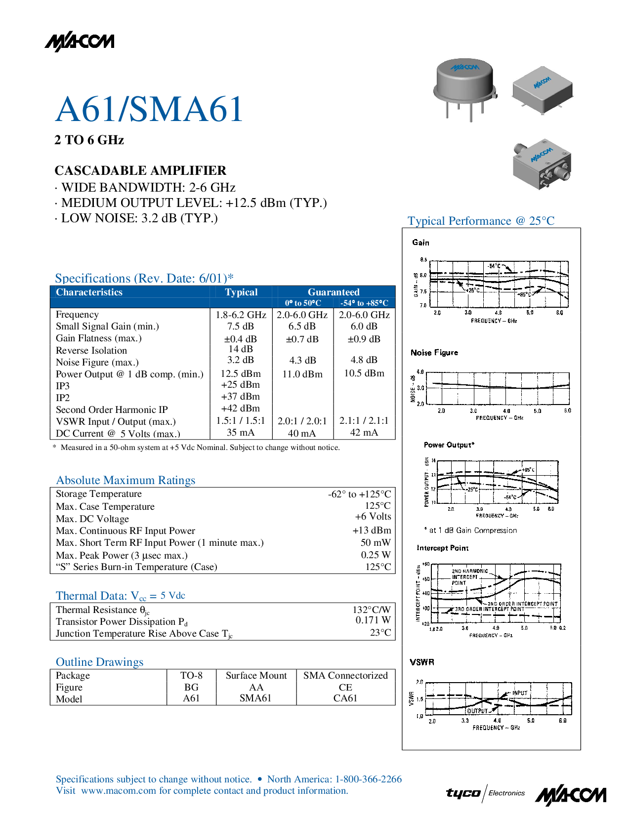 * 已测量 入点 一个 50-欧姆 系统 在 +5 vdc 标称值. 主题 至 变更 无 通知.