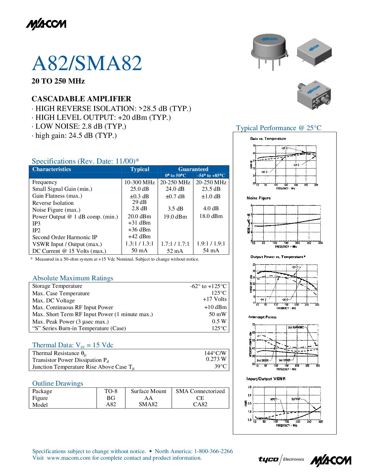 * 已测量 入点 一个 50-欧姆 系统 在 +15 vdc 标称值. 主题 至 变更 无 通知.