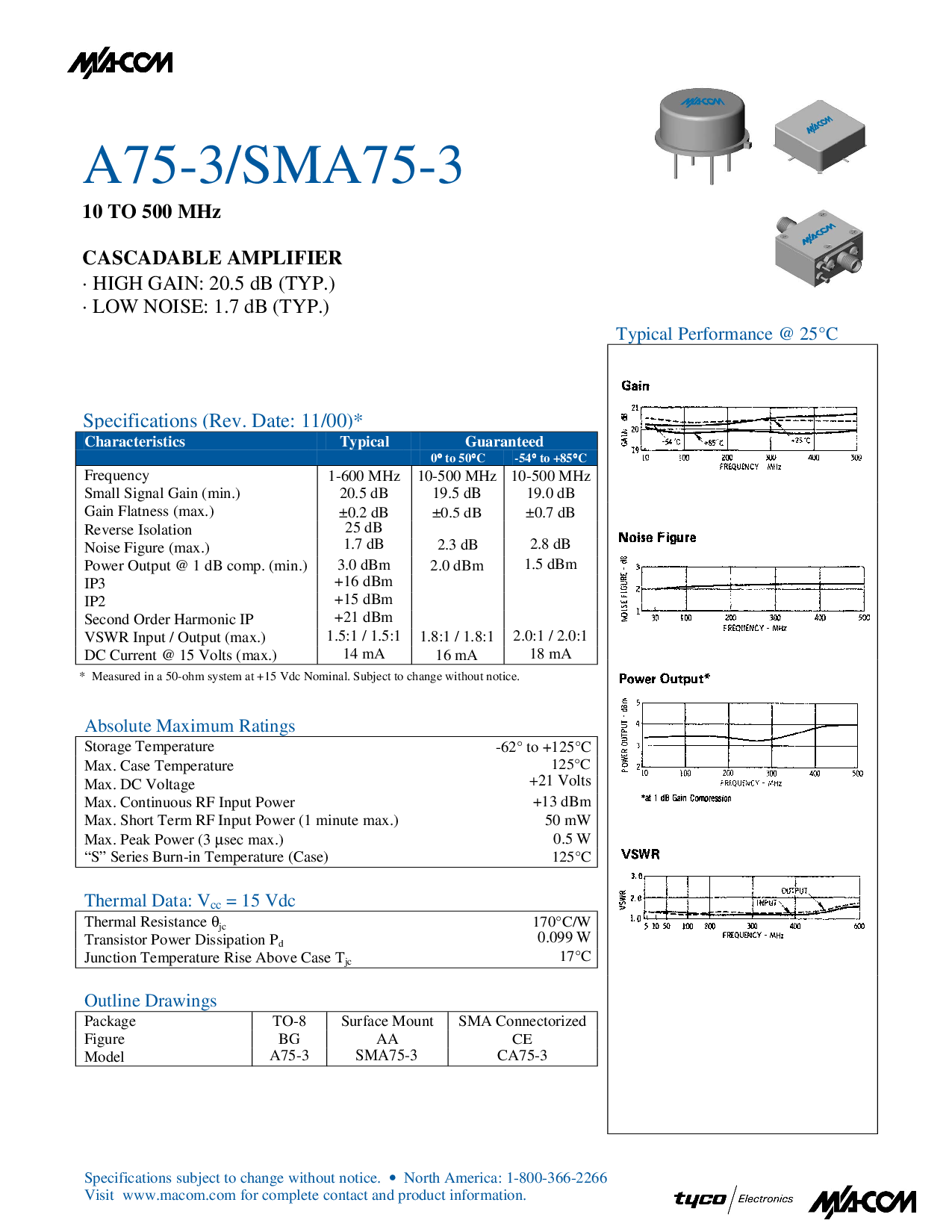 * 已测量 入点 一个 50-欧姆 系统 在 +15 vdc 标称值. 主题 至 变更 无 通知.