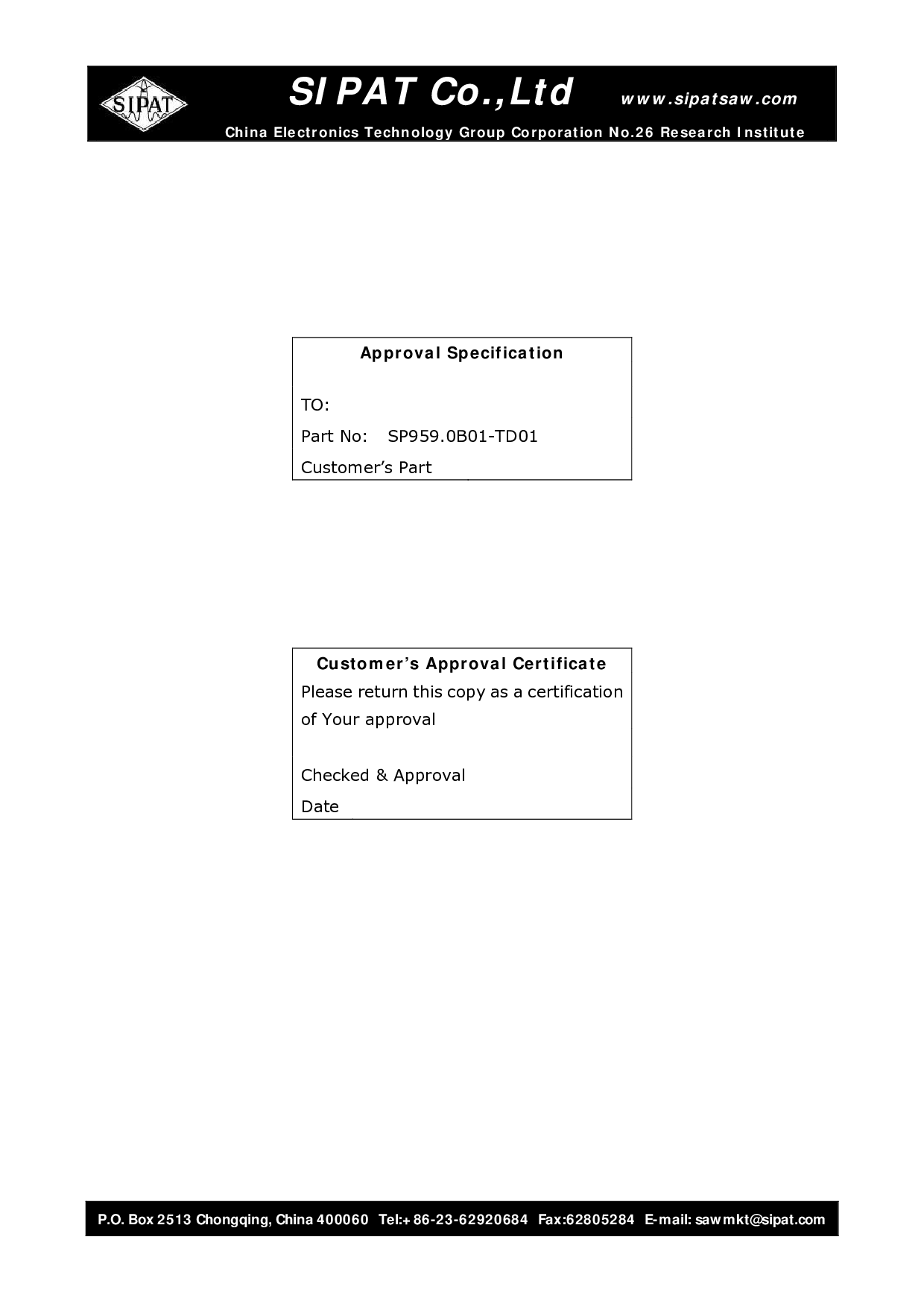 p.o. 框 2513 chongqing, 中国 400060 电话:+86-23-62920684 传真:62805284 e-mail: sawmkt@sipat.com