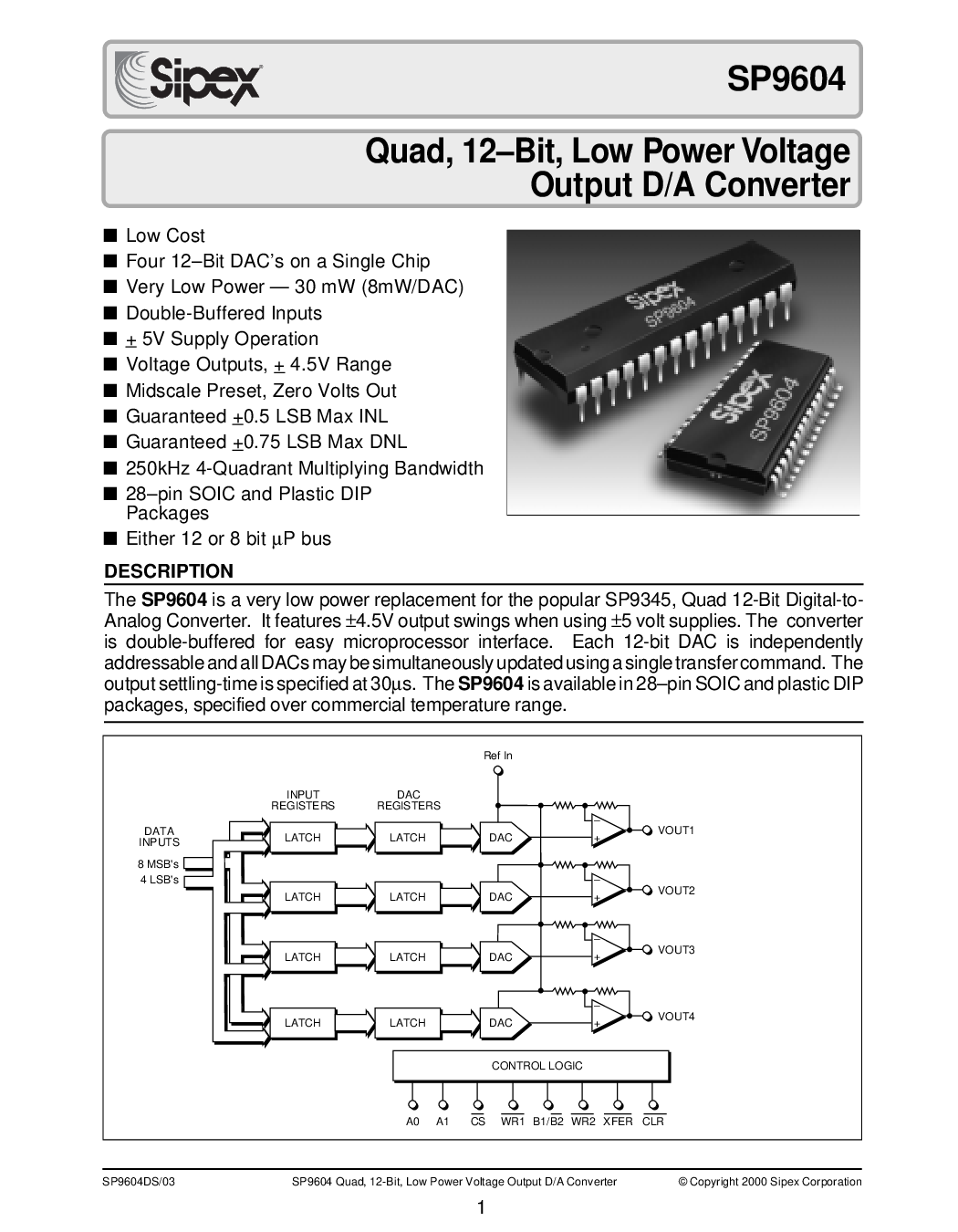 sp9604ds/03 sp9604 四边形, 12-有点, 低 电源 电压 输出 d/一个 变频器 © 版权 2000 sipex 公司