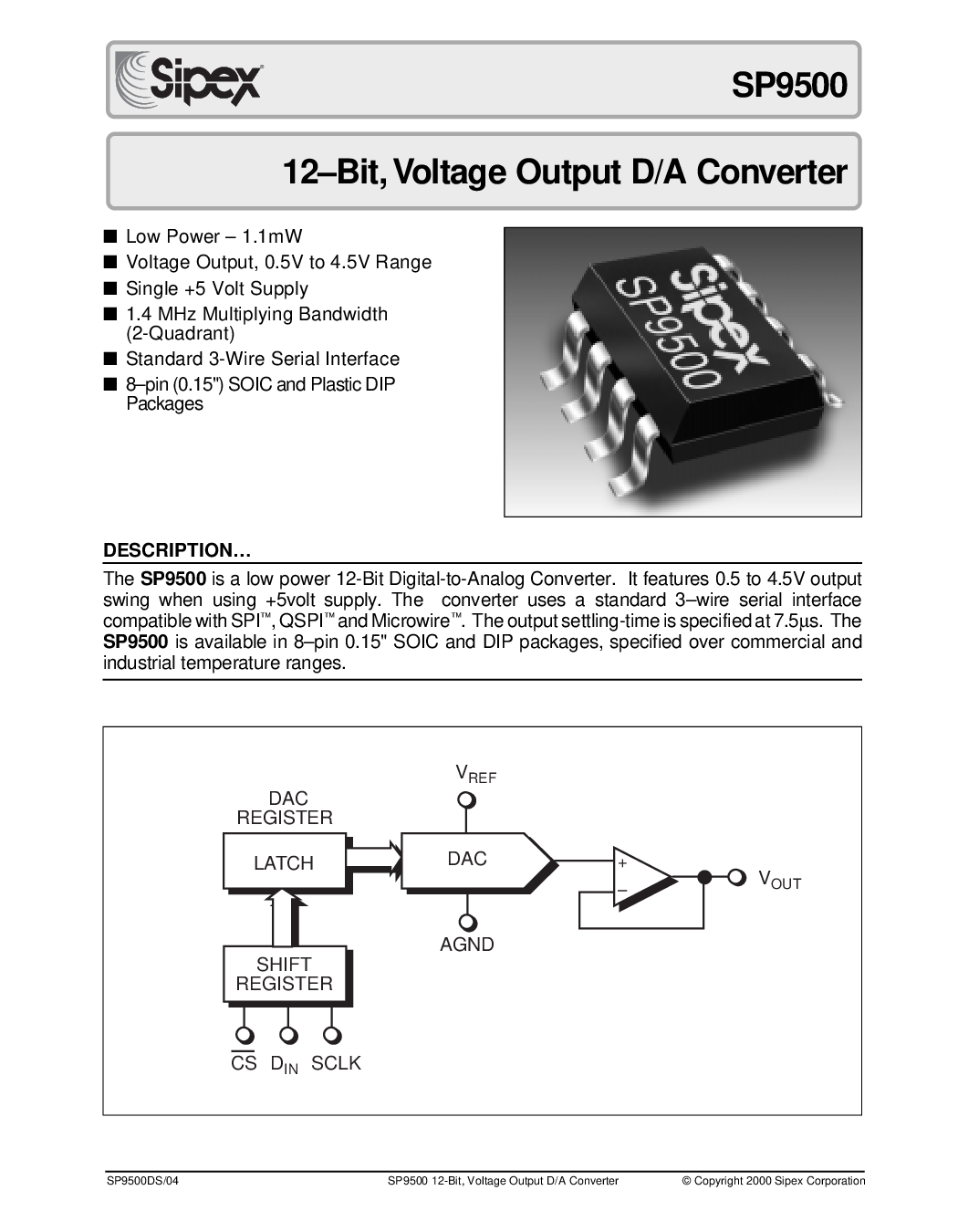 sp9500ds/04 sp9500 12-有点, 电压 输出 d/一个 变频器 © 版权 2000 sipex 公司
