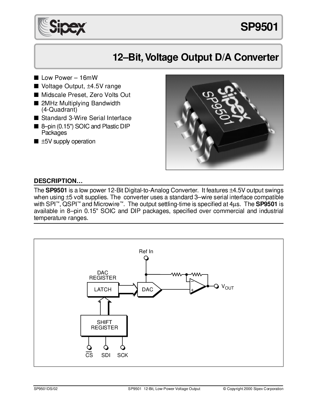 sp9501ds/02 sp9501 12-有点, 低功耗 电压 输出 © 版权 2000 sipex 公司