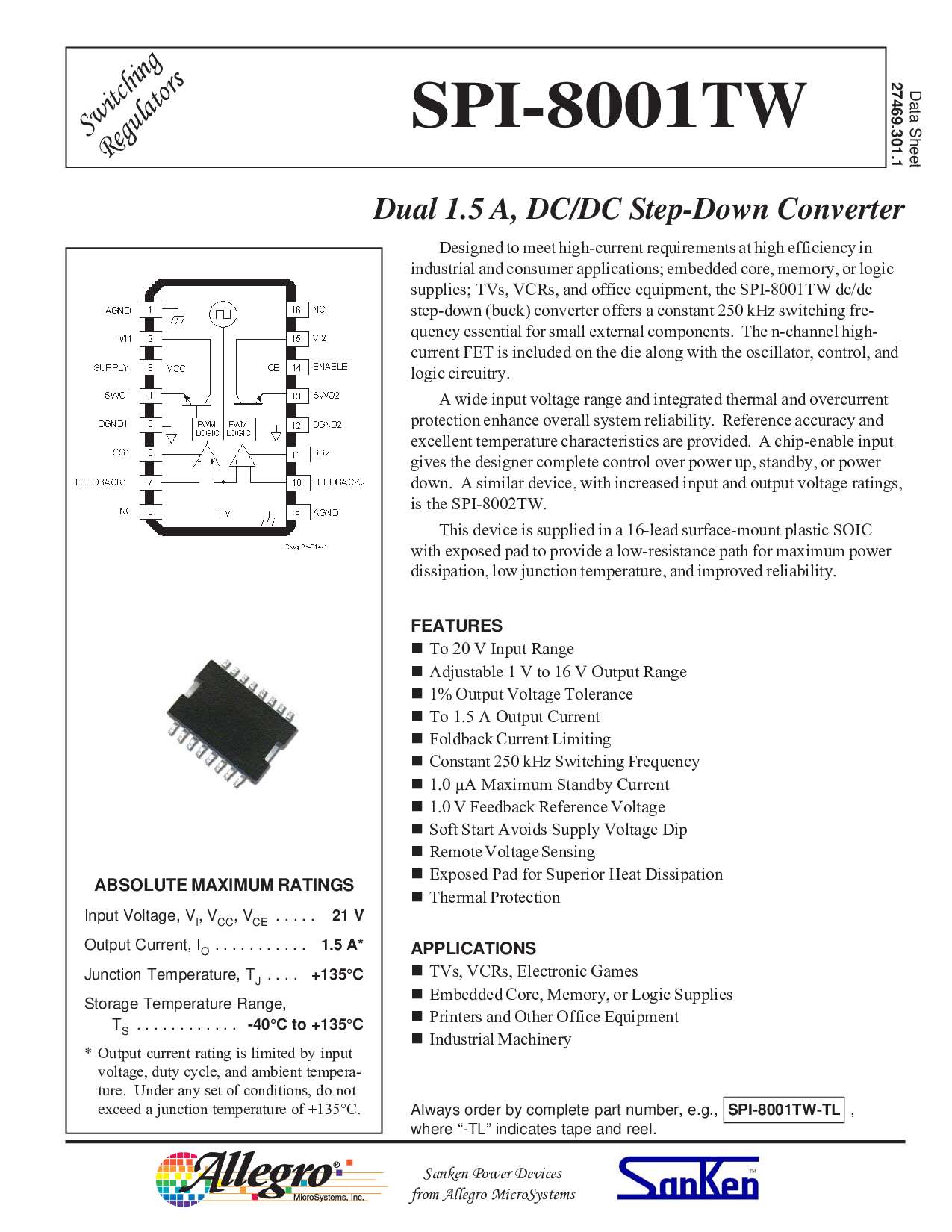 供应品; tvs, vcrs, 和 办公室 设备, 这 spi-8001tw dc/dc
