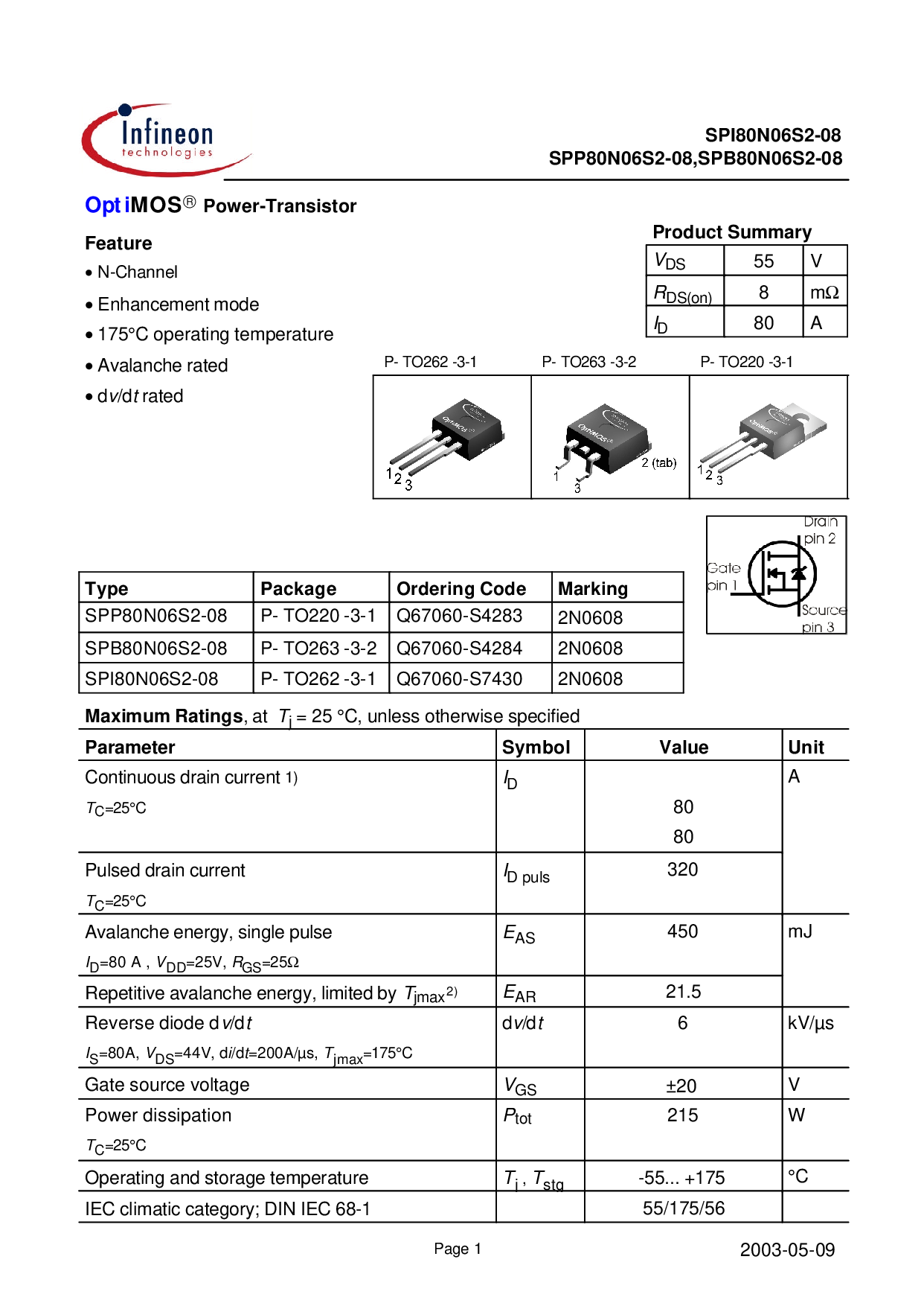 spp80n06s2-08 p- to220 -3-1 q67060-s4283