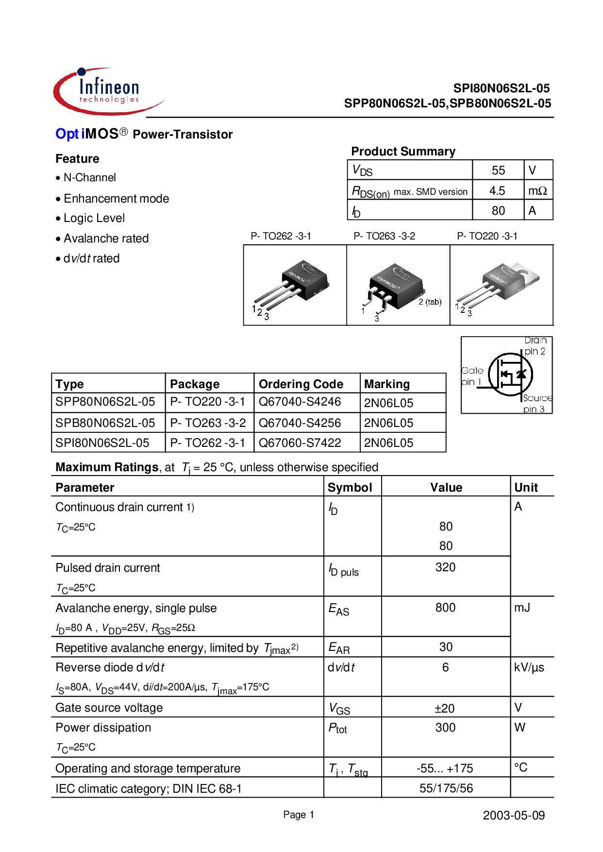 spb80n06s2l-05 p- to263 -3-2 q67040-s4256
