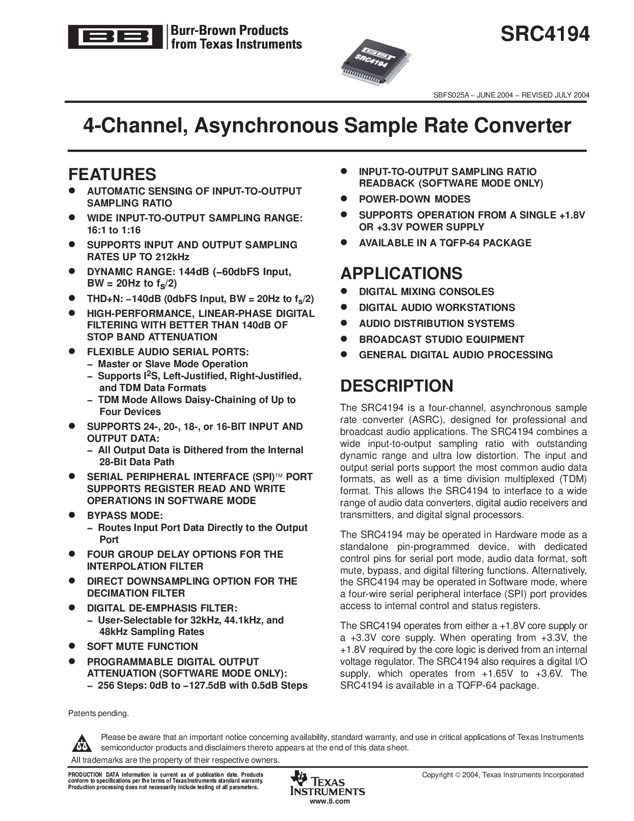 src4194 是 可用 入点 一个 tqfp-64 包装.